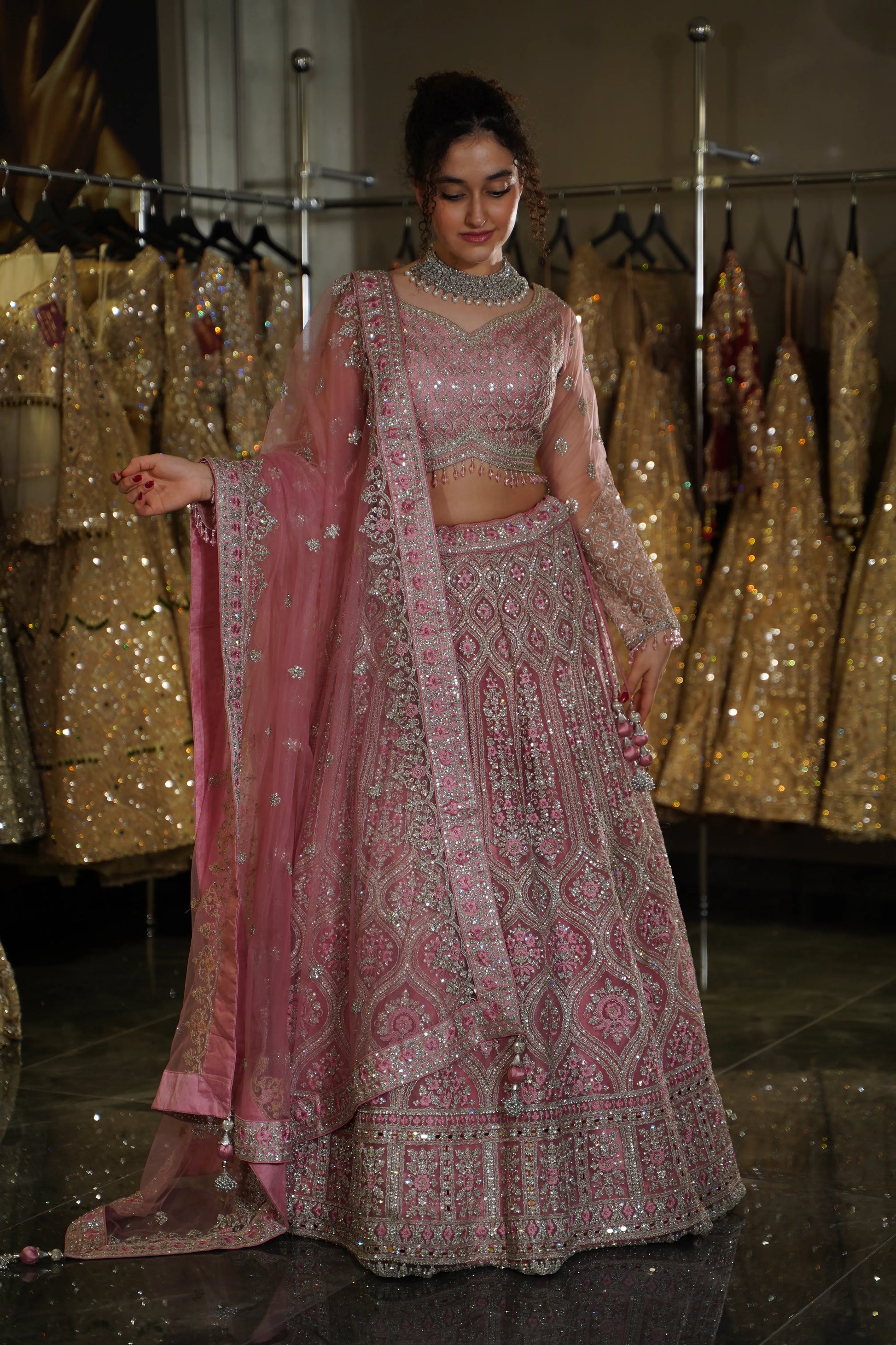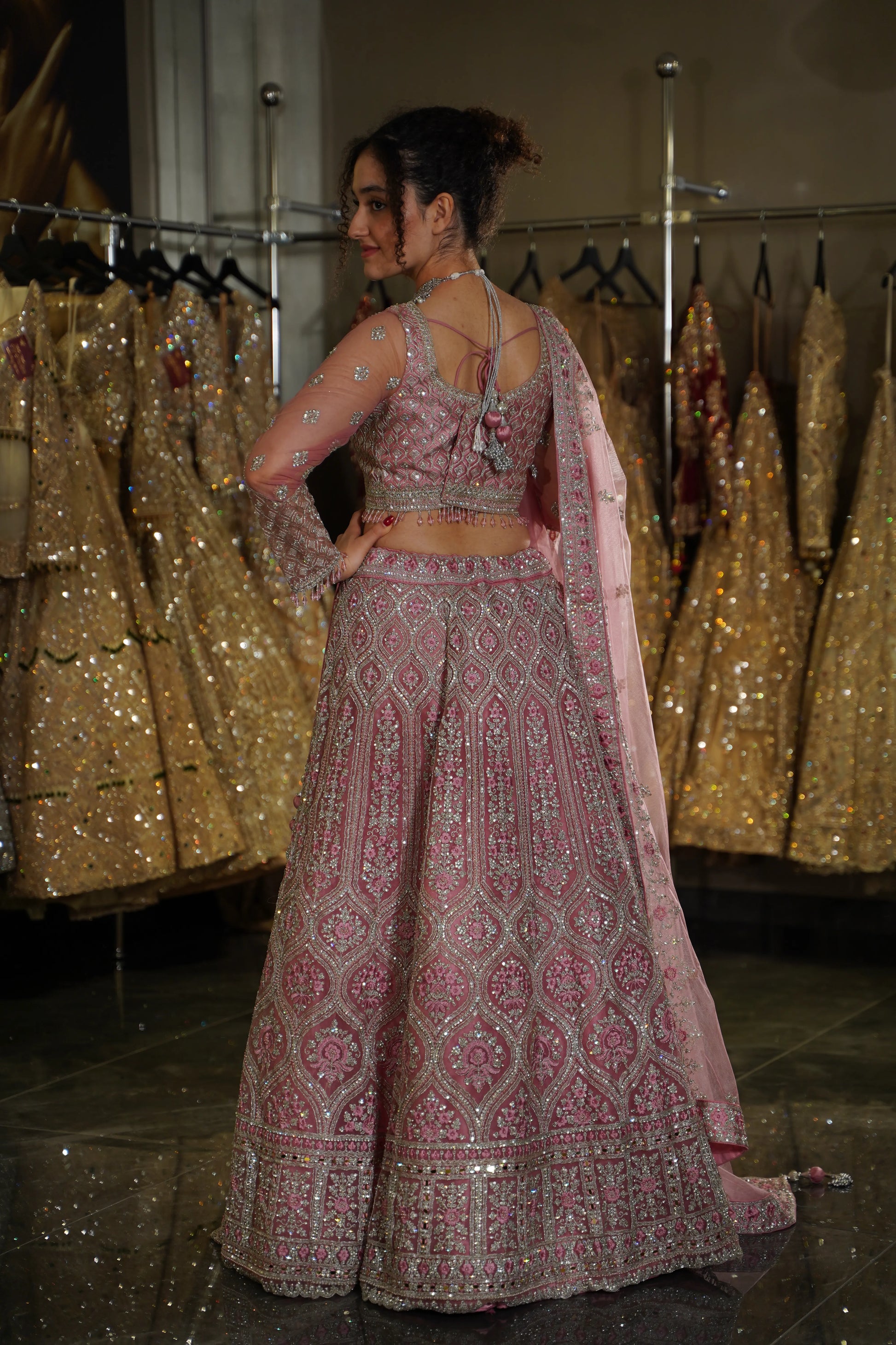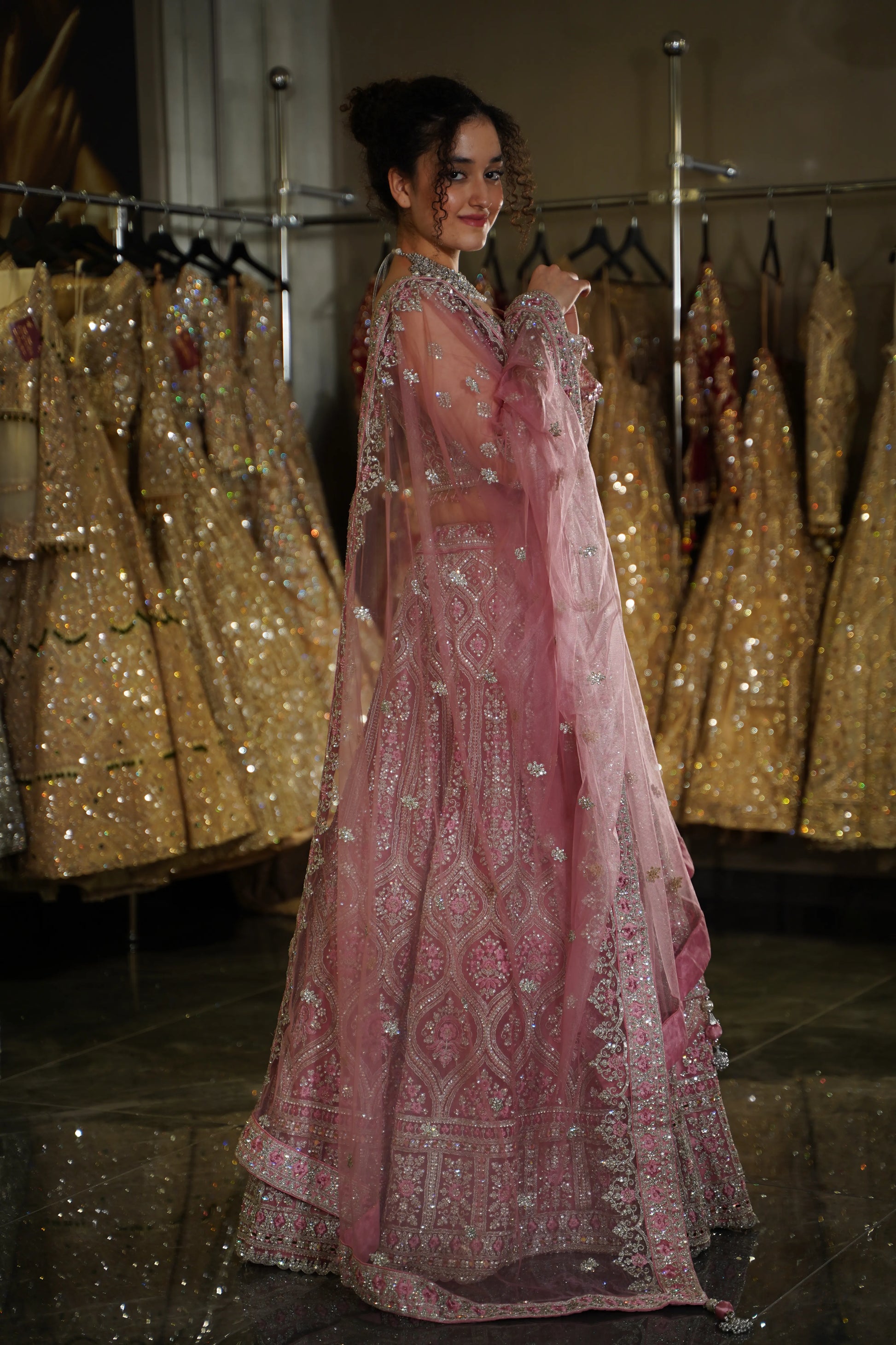 Soft Rose Pink Ogee Trellis Bridal Lehenga Set