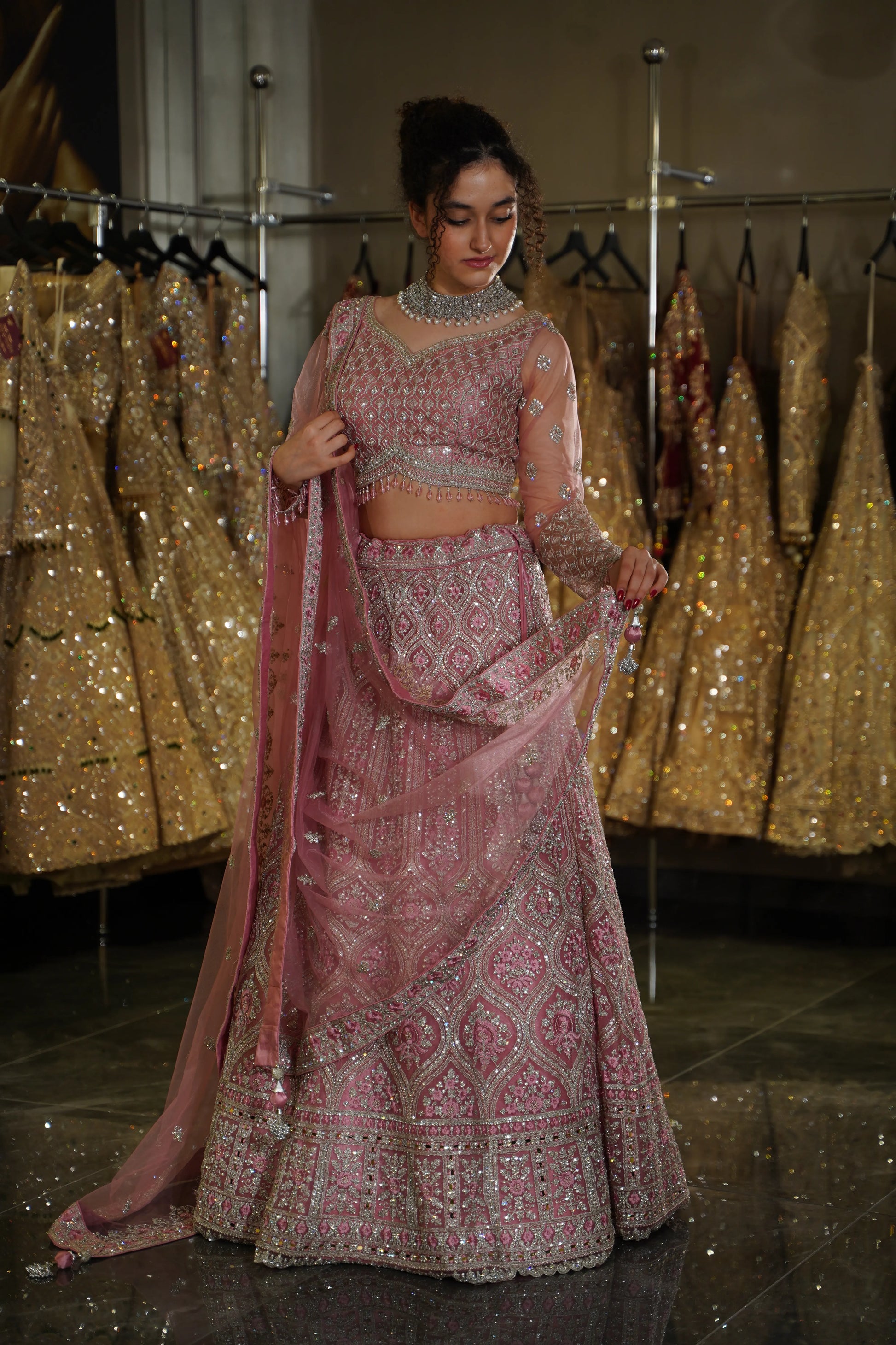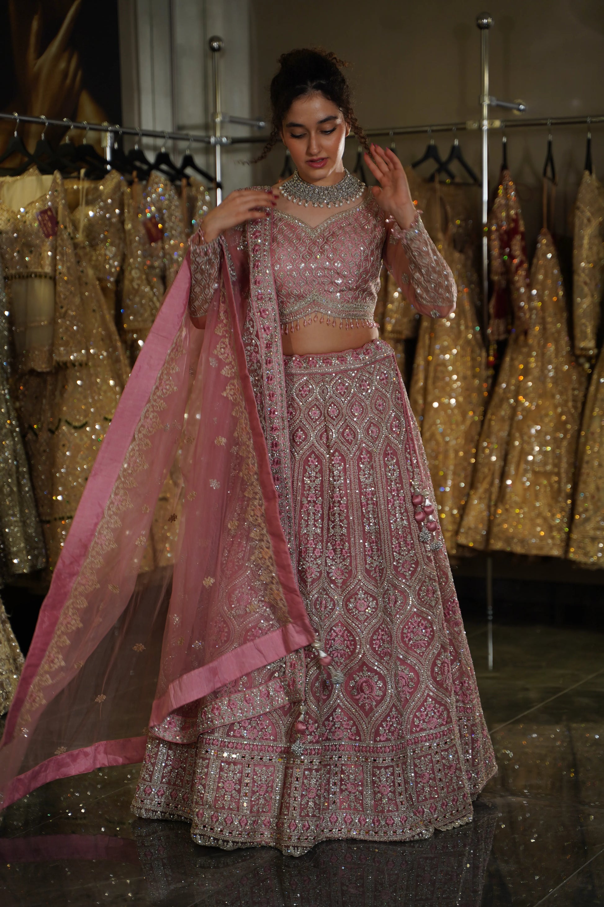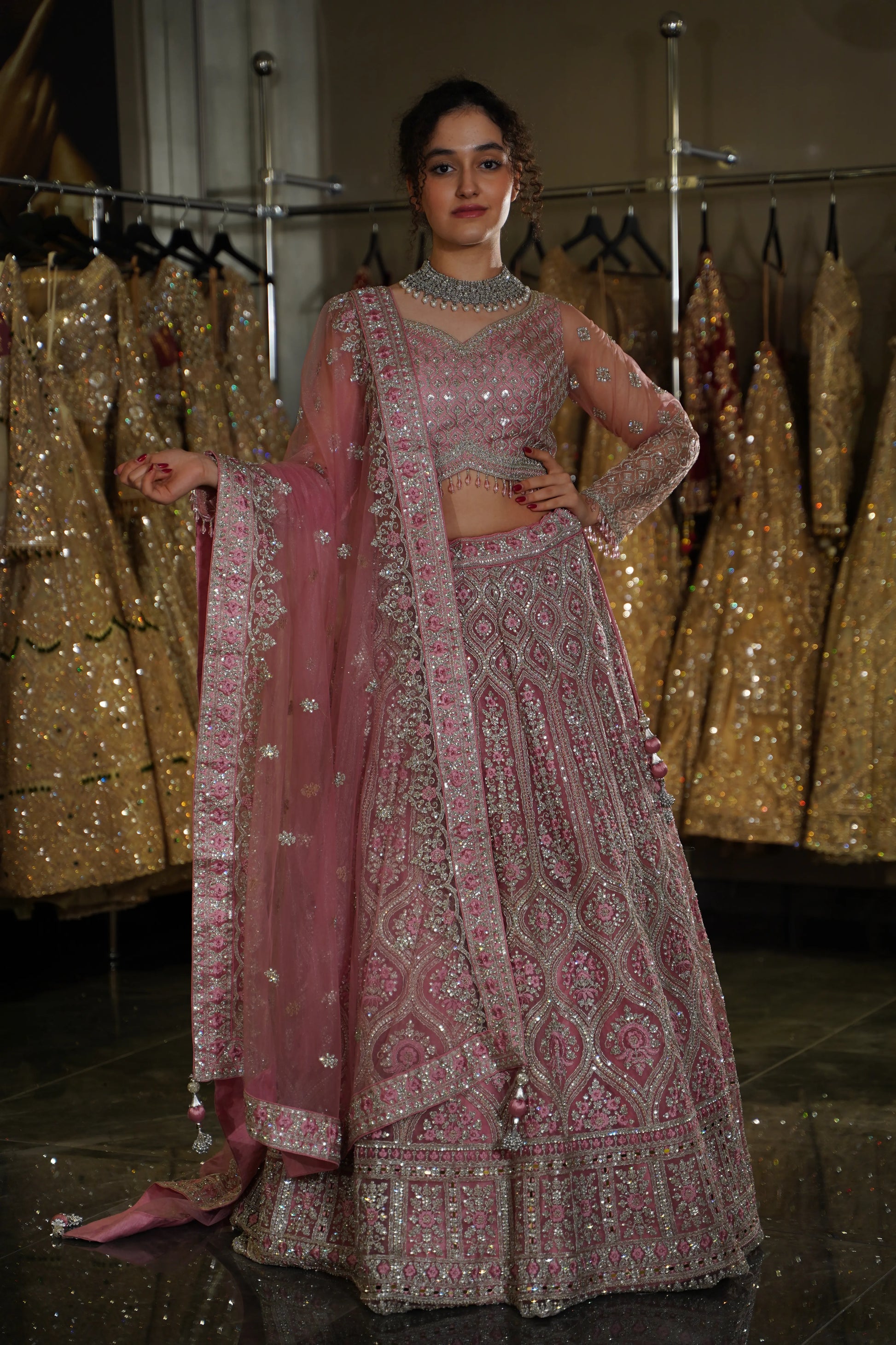 Soft Rose Pink Ogee Trellis Bridal Lehenga Set