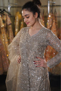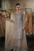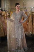 Dusty Taupe Silver Embroidered Long Kurta Sharara Set