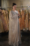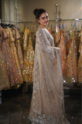 | Dupatta | Sheer taupe net dupatta with a matching embroidered border and scattered sequins |