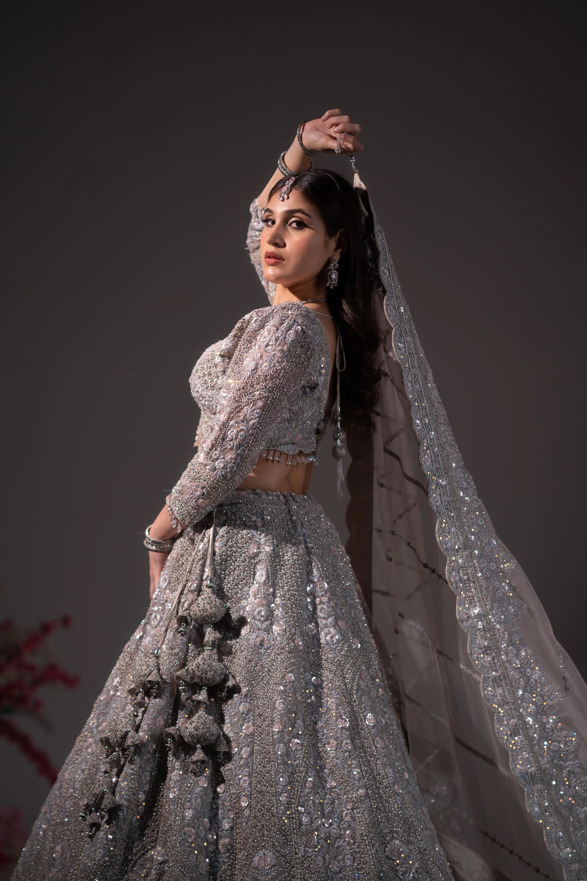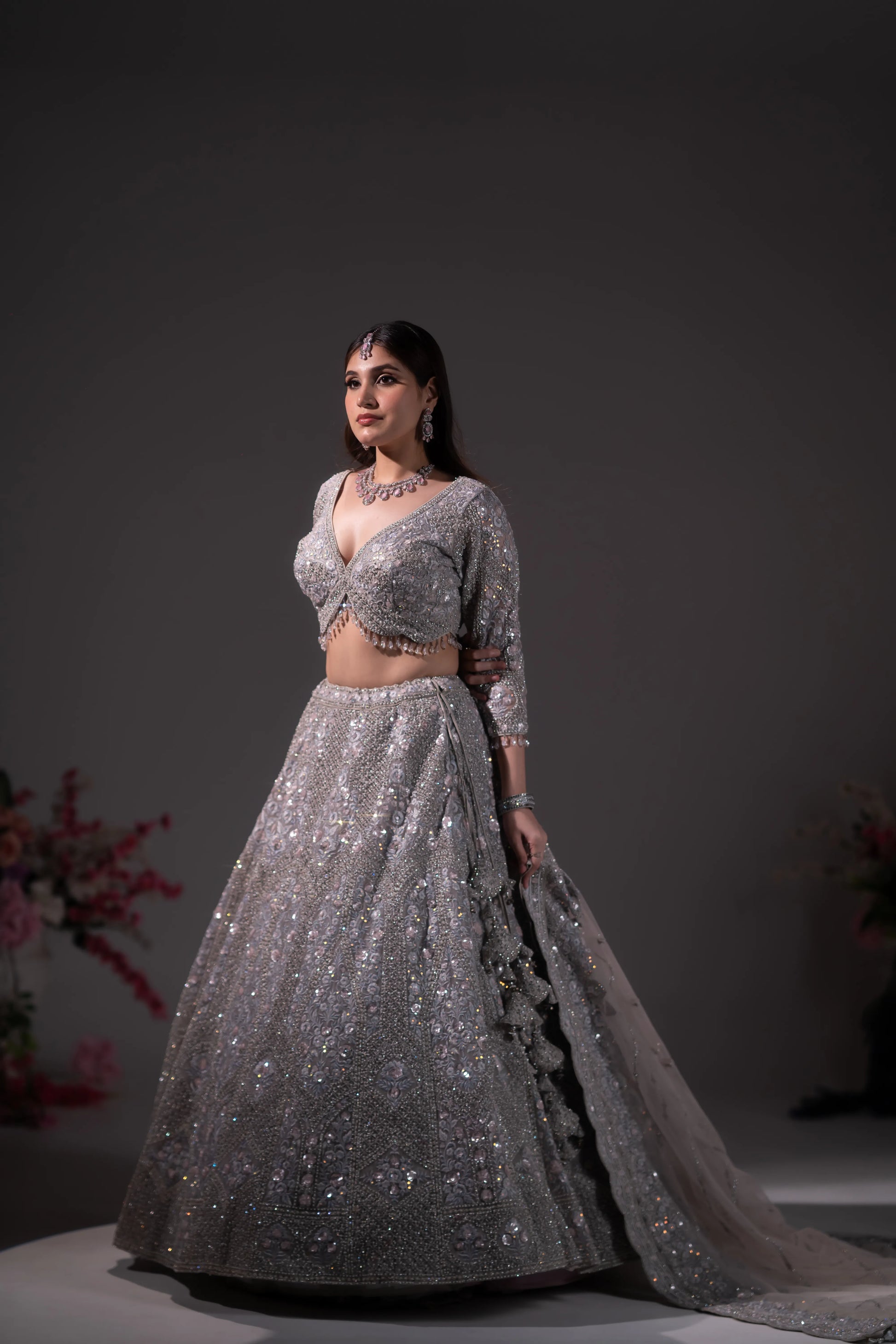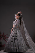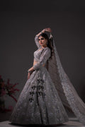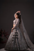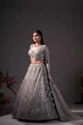 Gunmetal Grey Crystal & Sequin Embroidered Lehenga Set