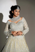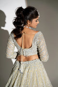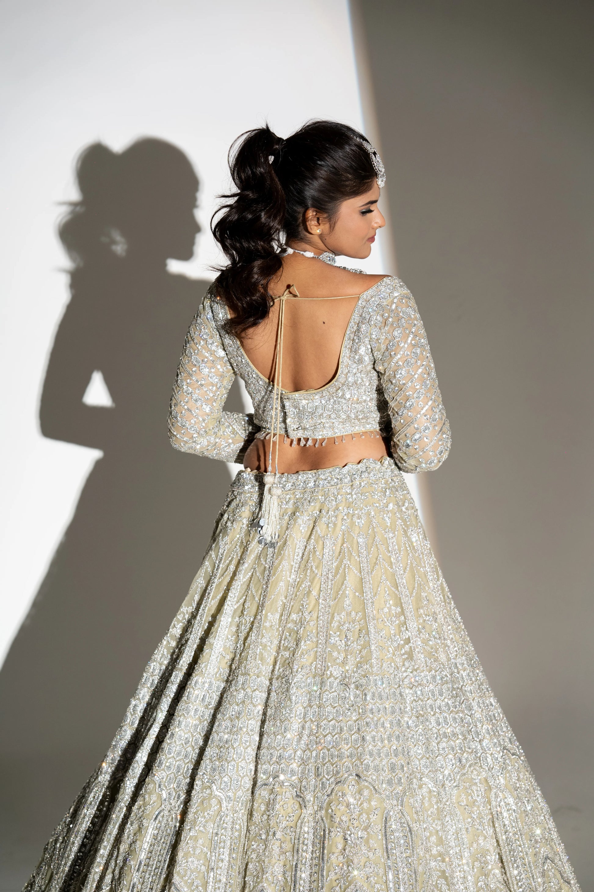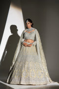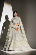 Pale Lime Green & Silver Crystal Embroidered Bridal Lehenga