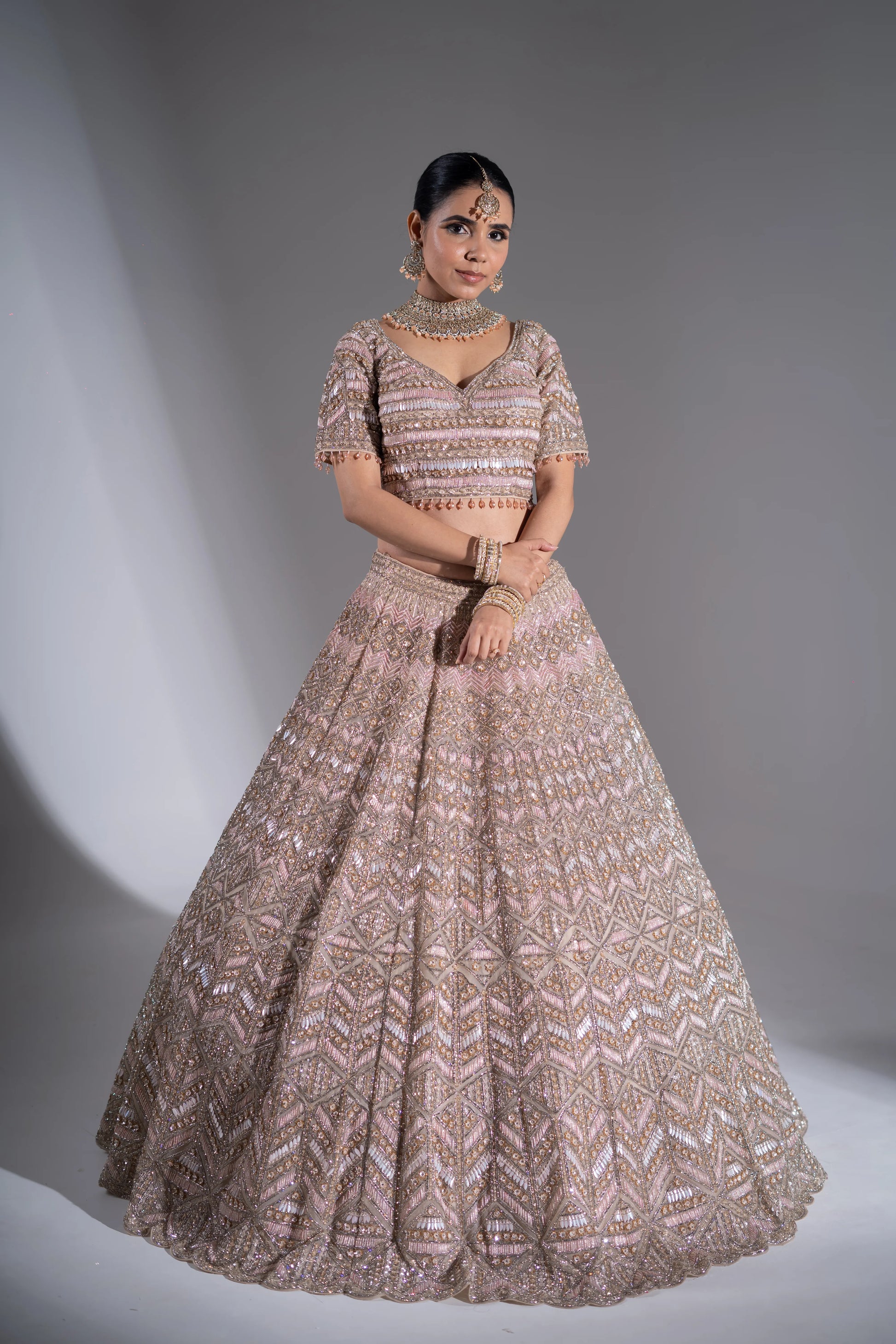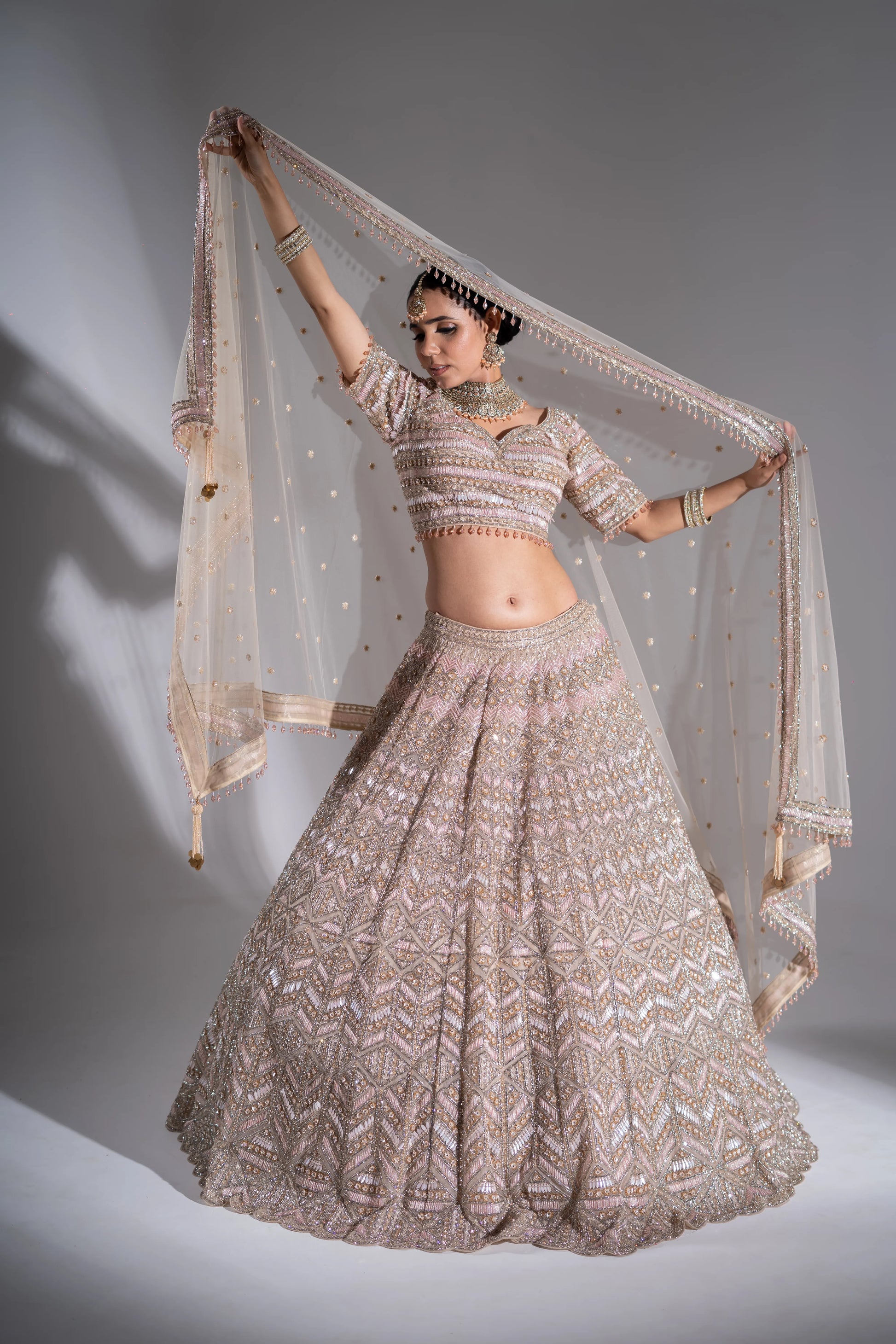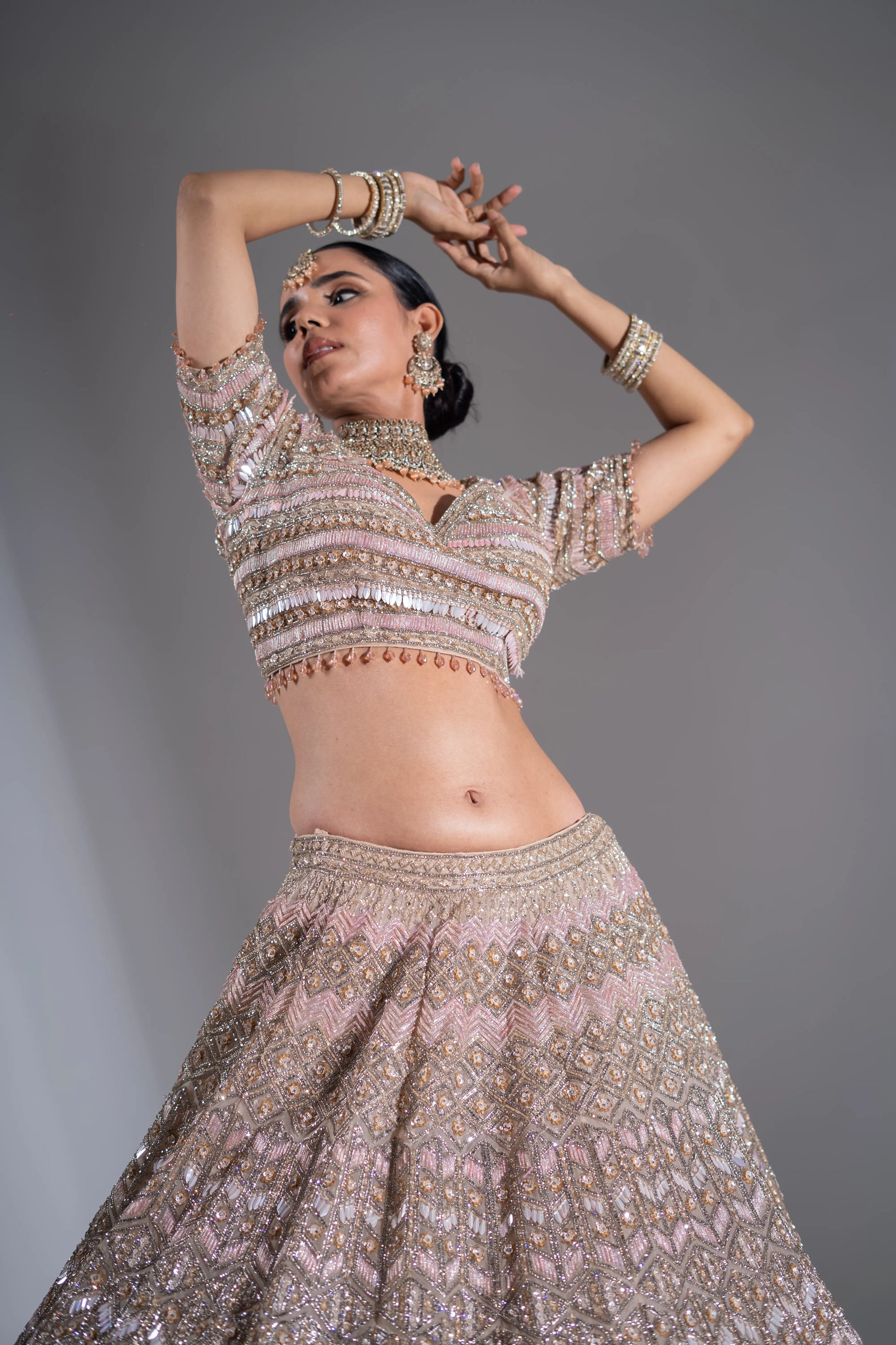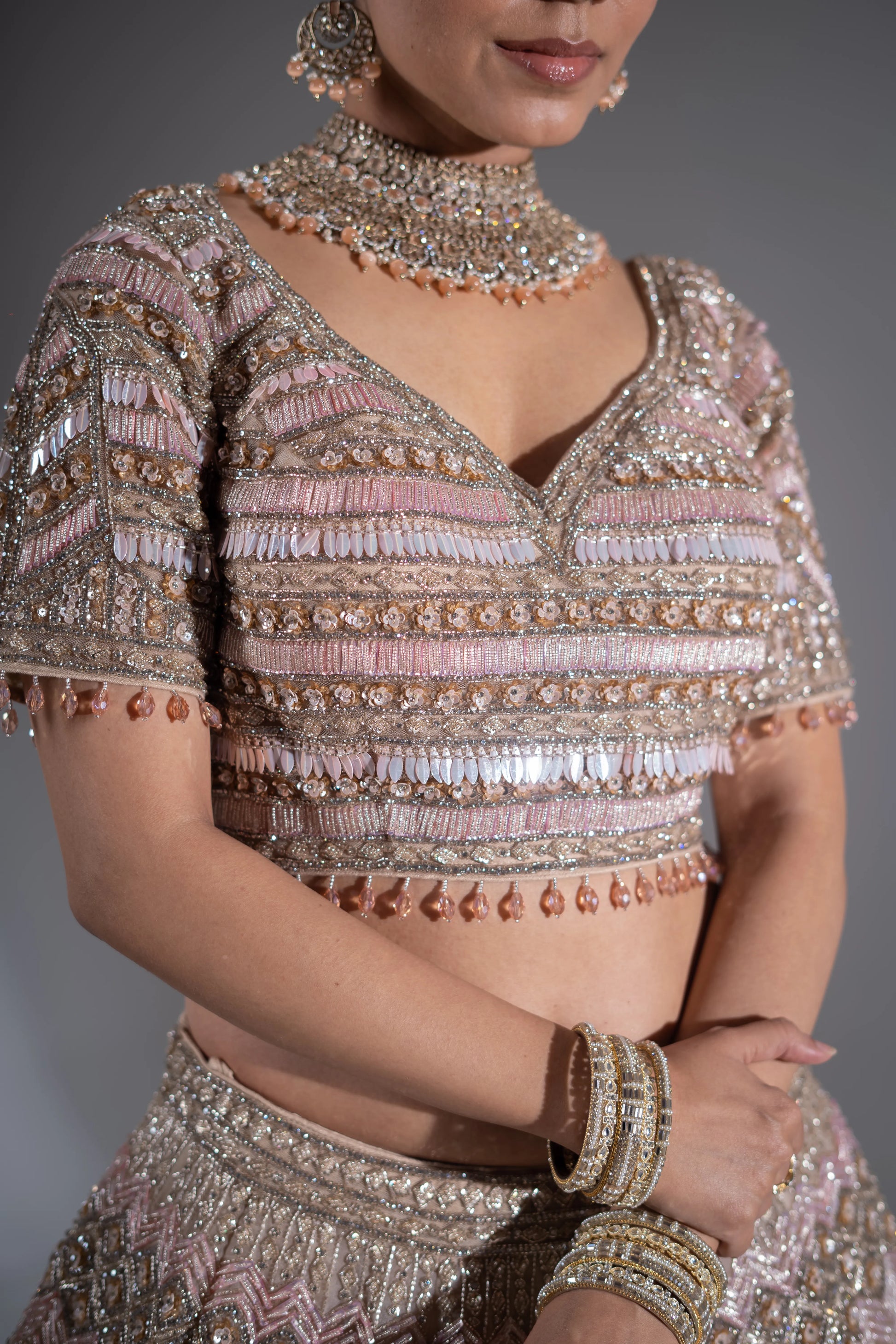 Champagne Blush Art Deco Embellished Lehenga Choli
