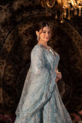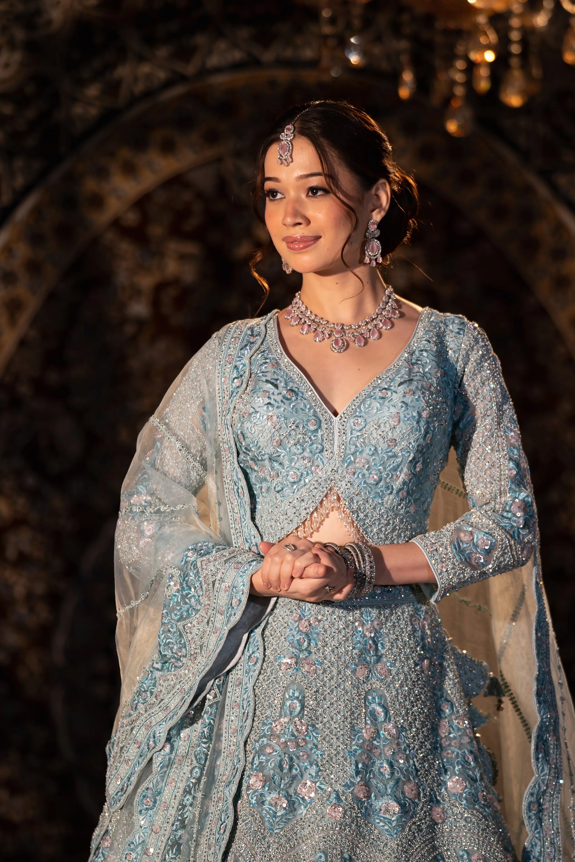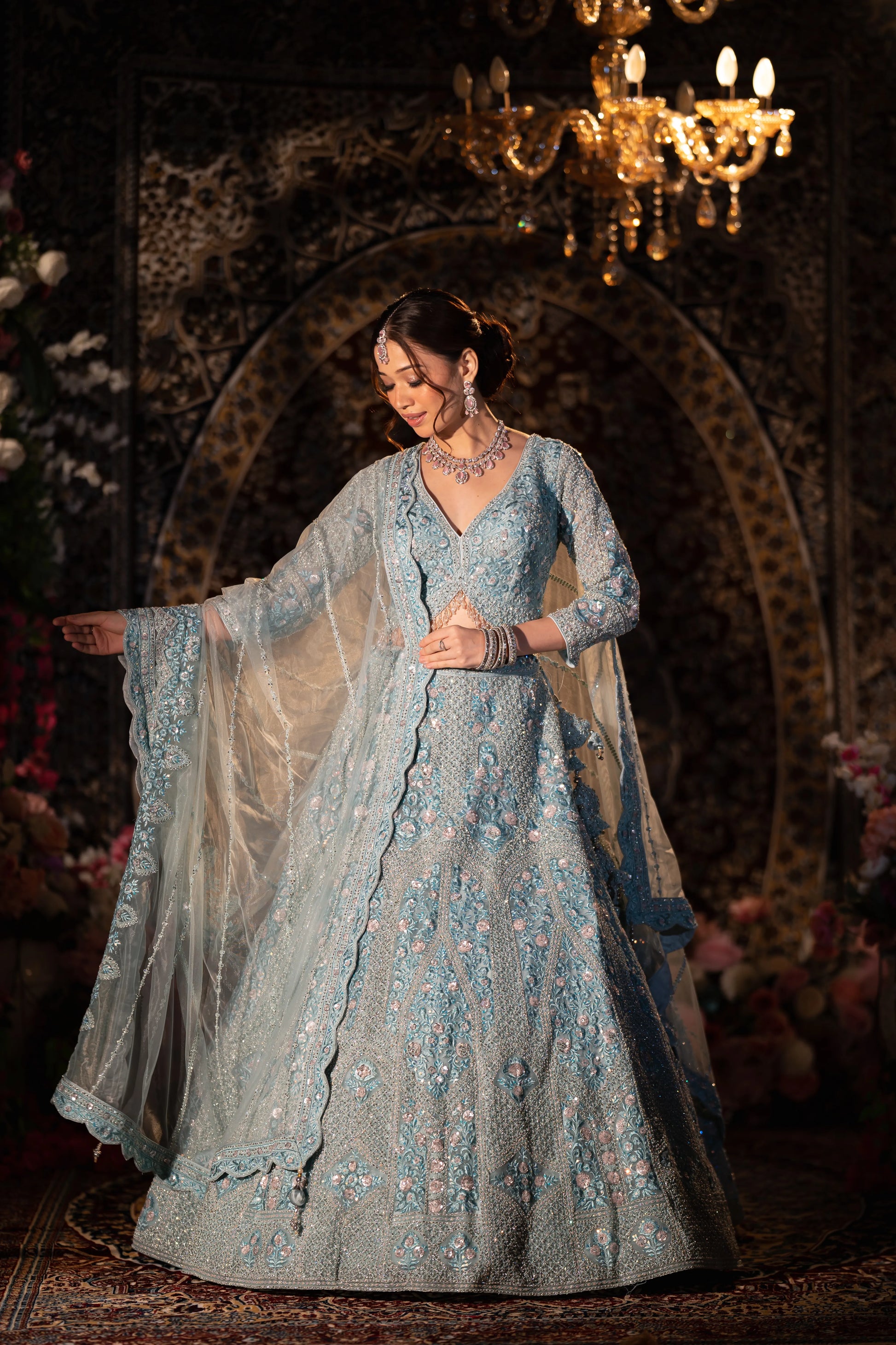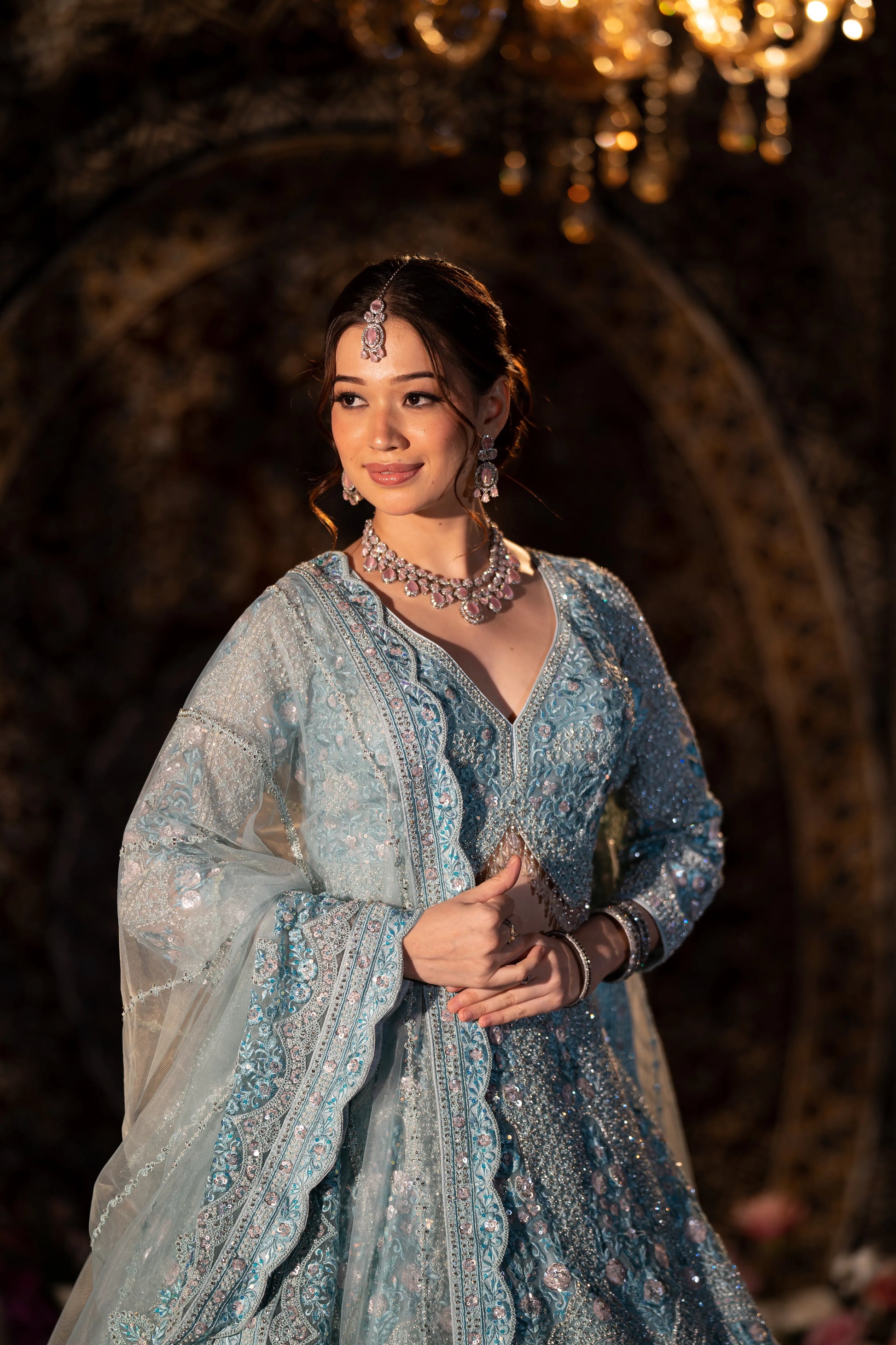 Ice Blue Crystal-Embellished Bridal Lehenga Set