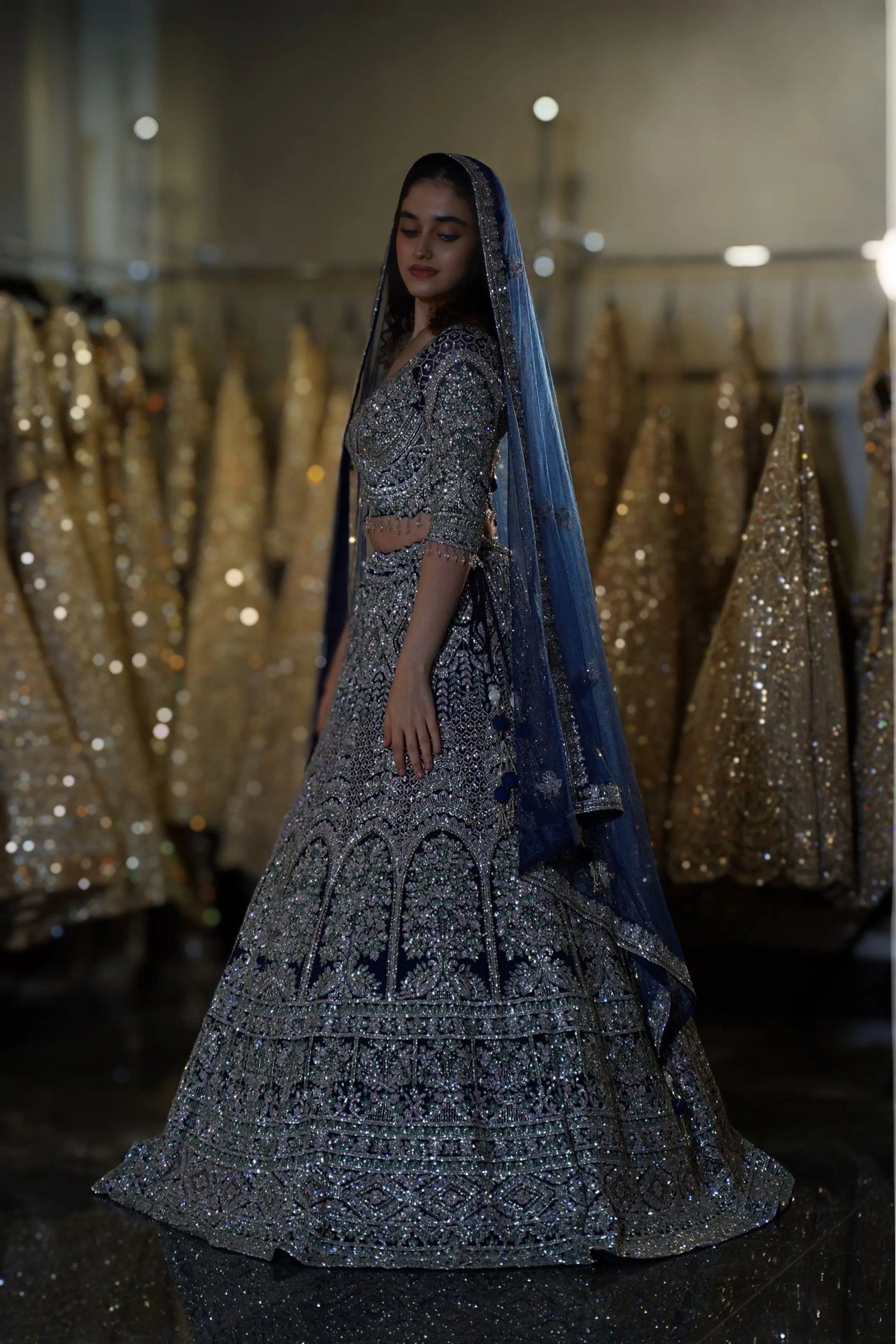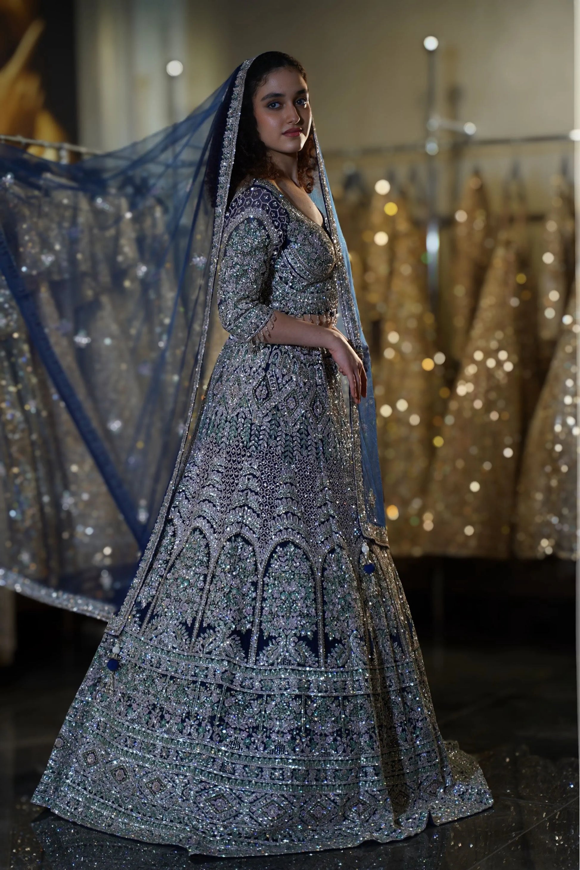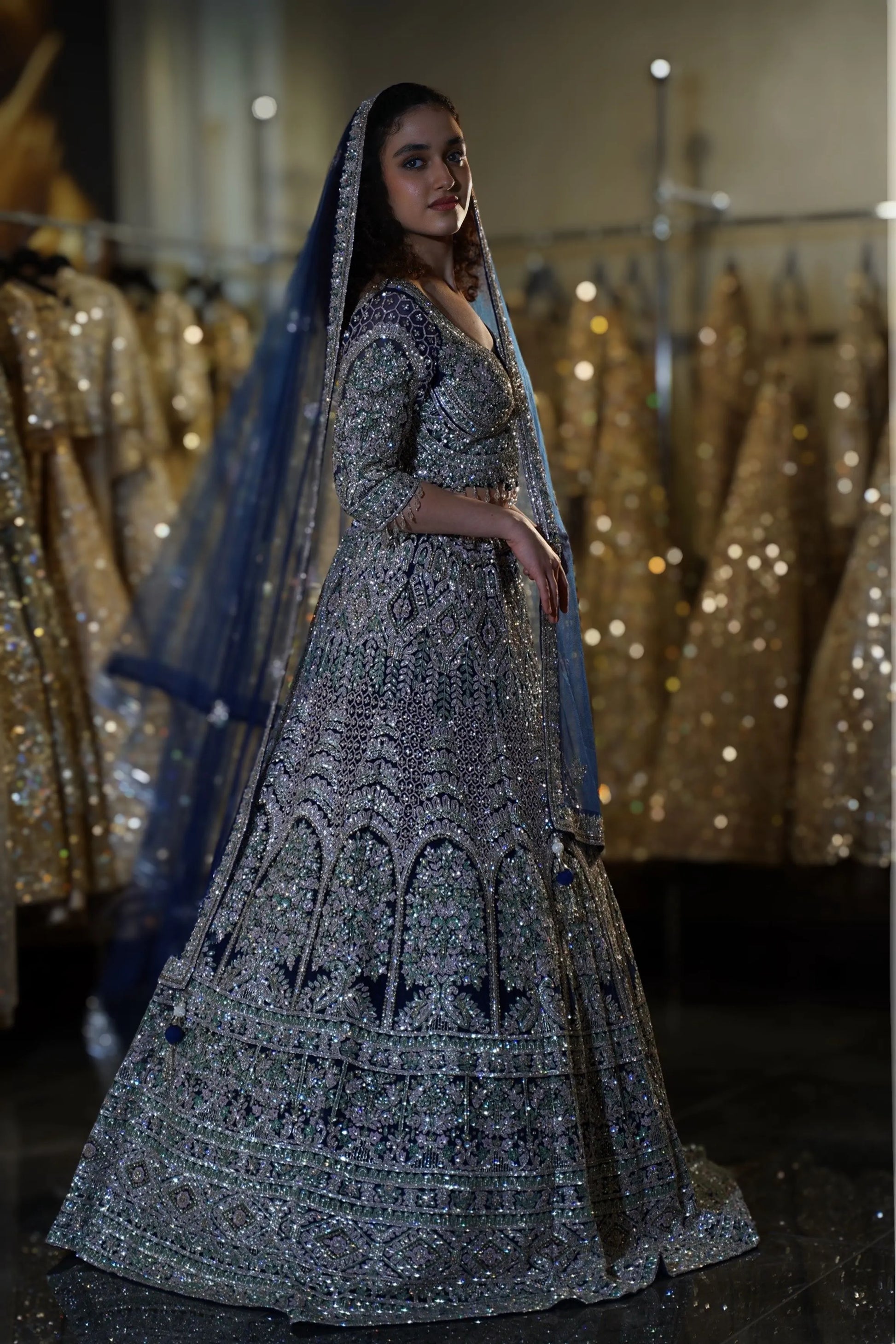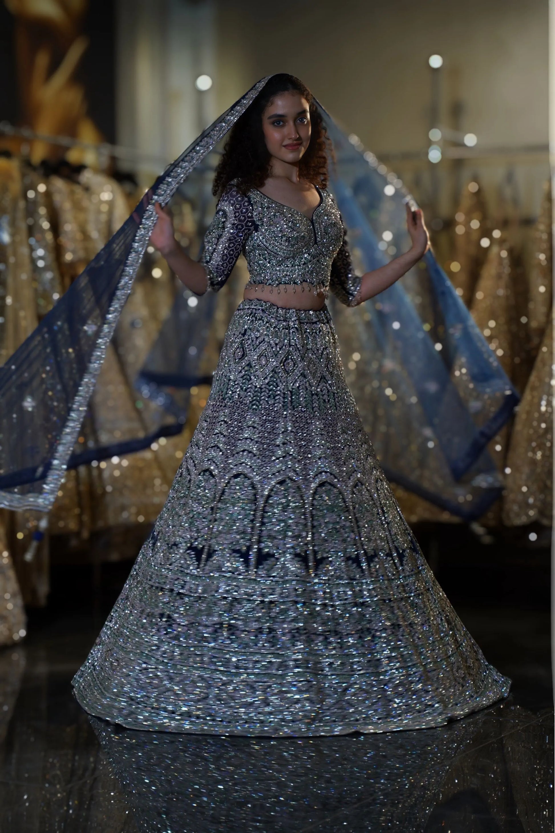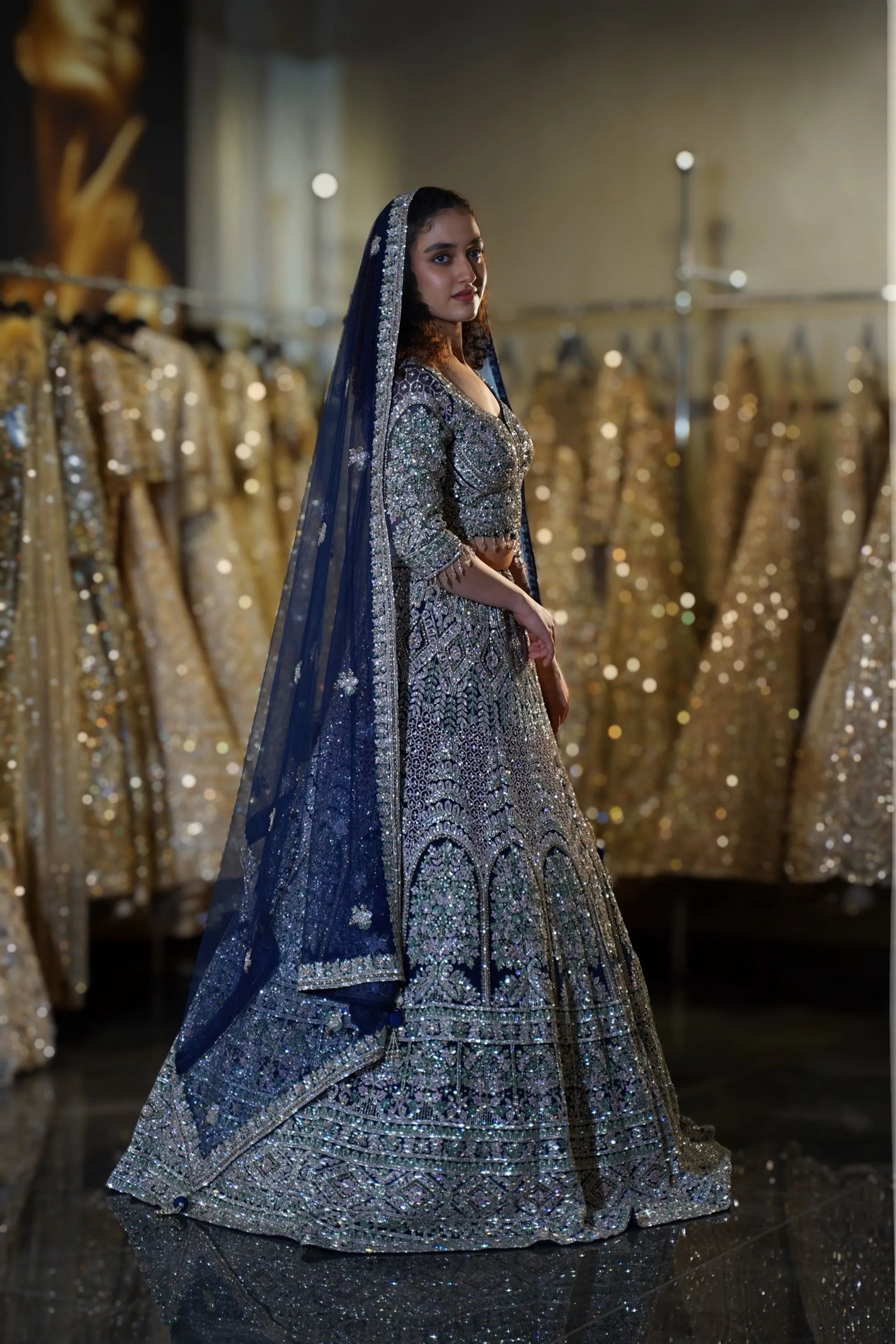 Midnight Blue Silver Sequin Embellished Bridal Lehenga Choli