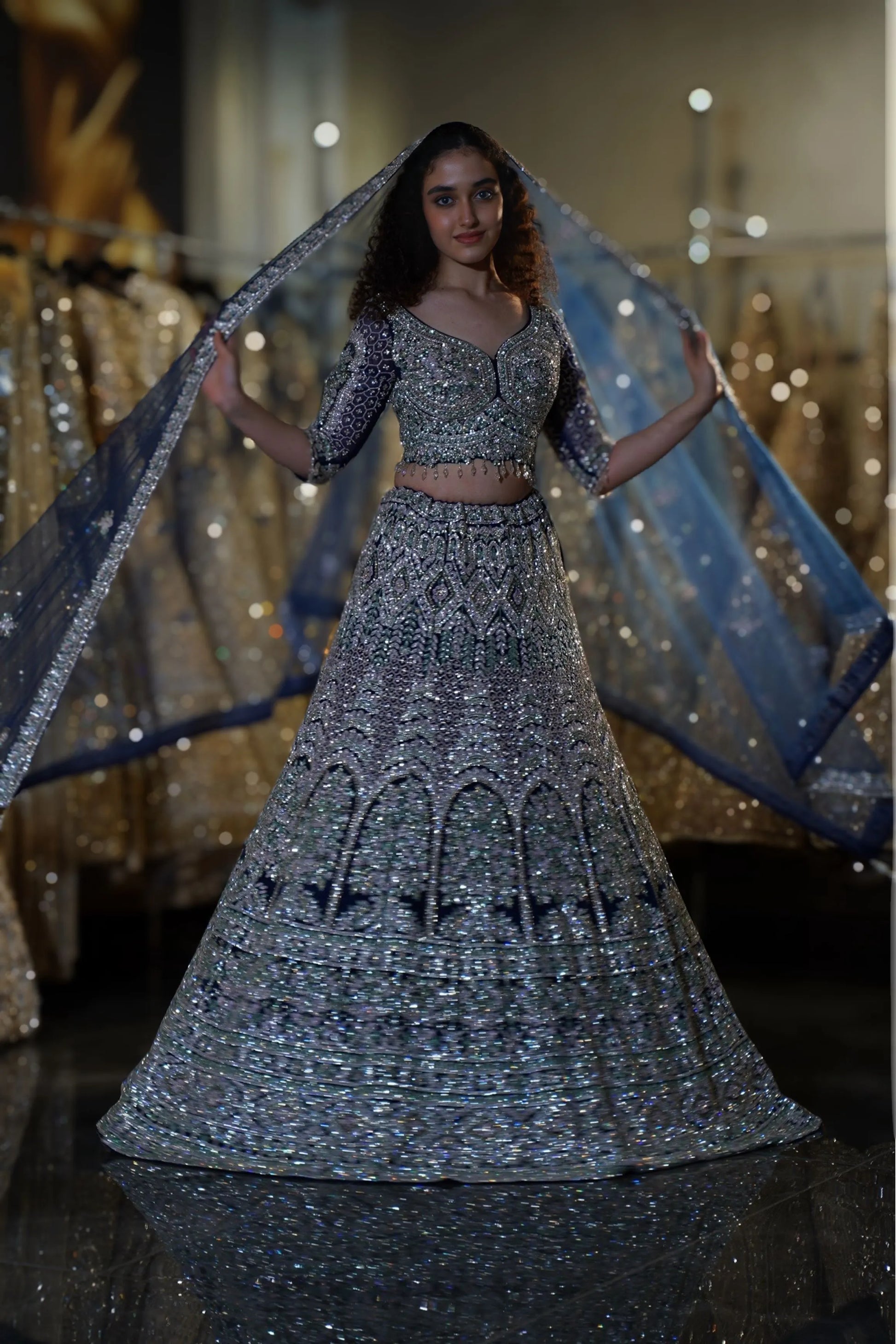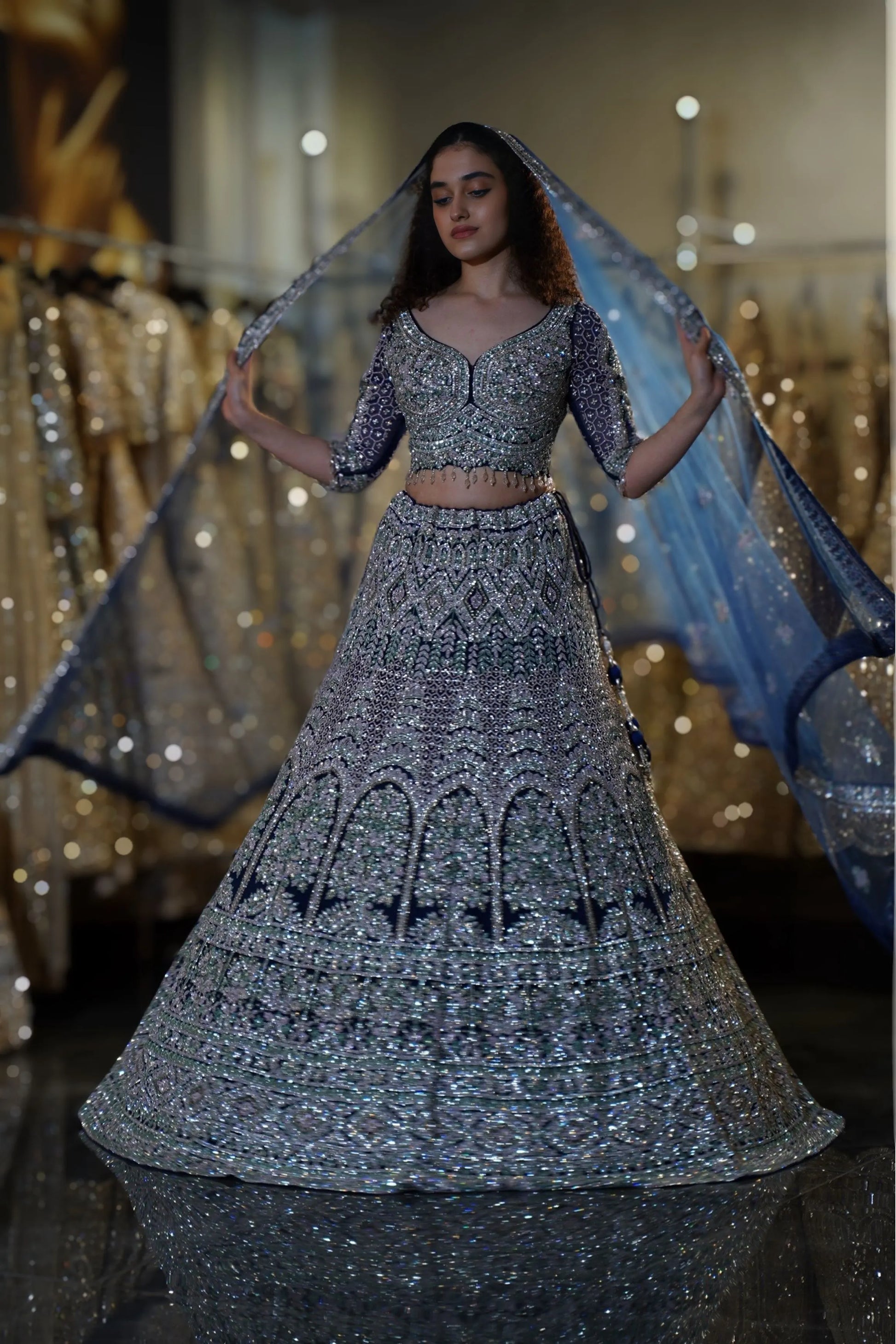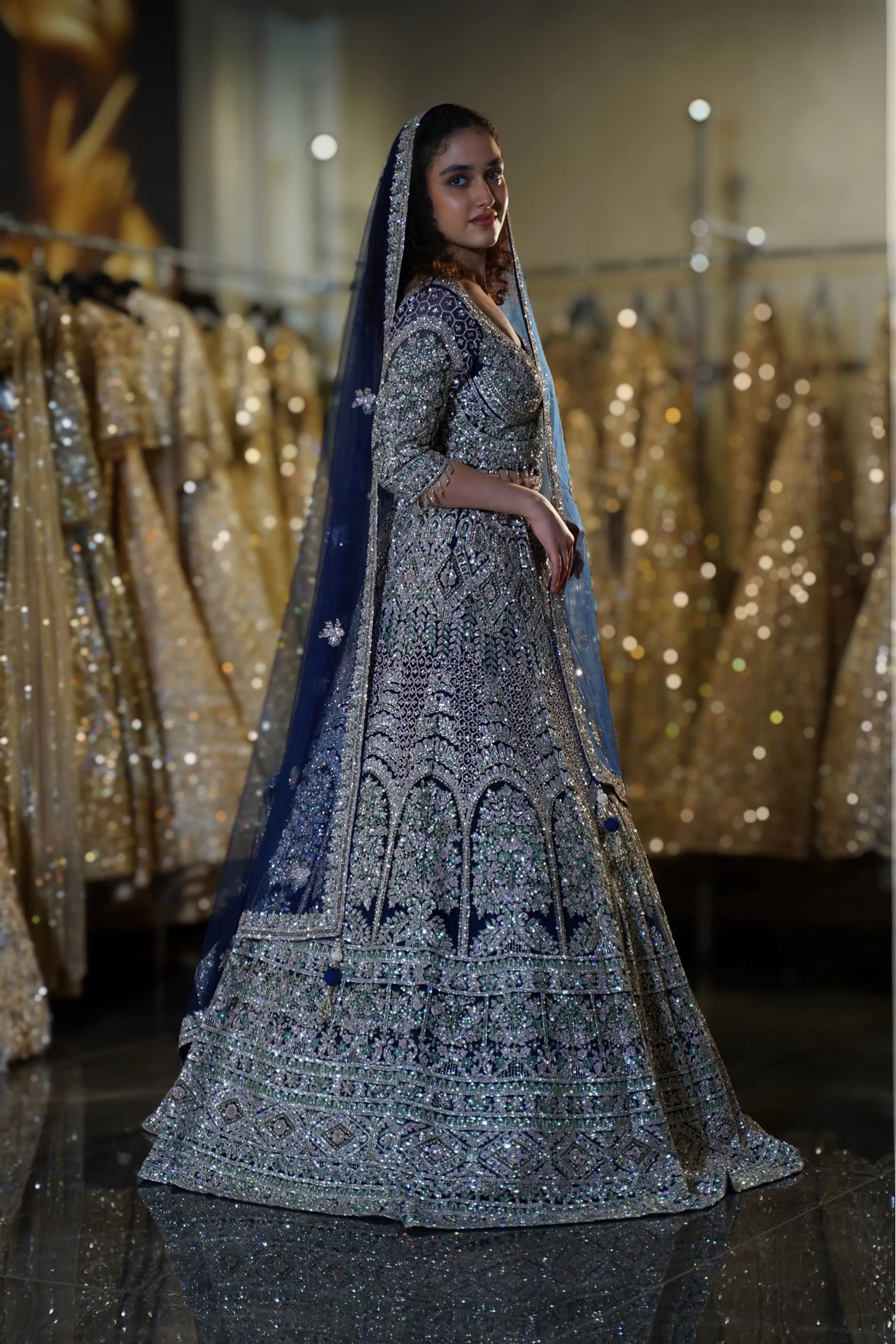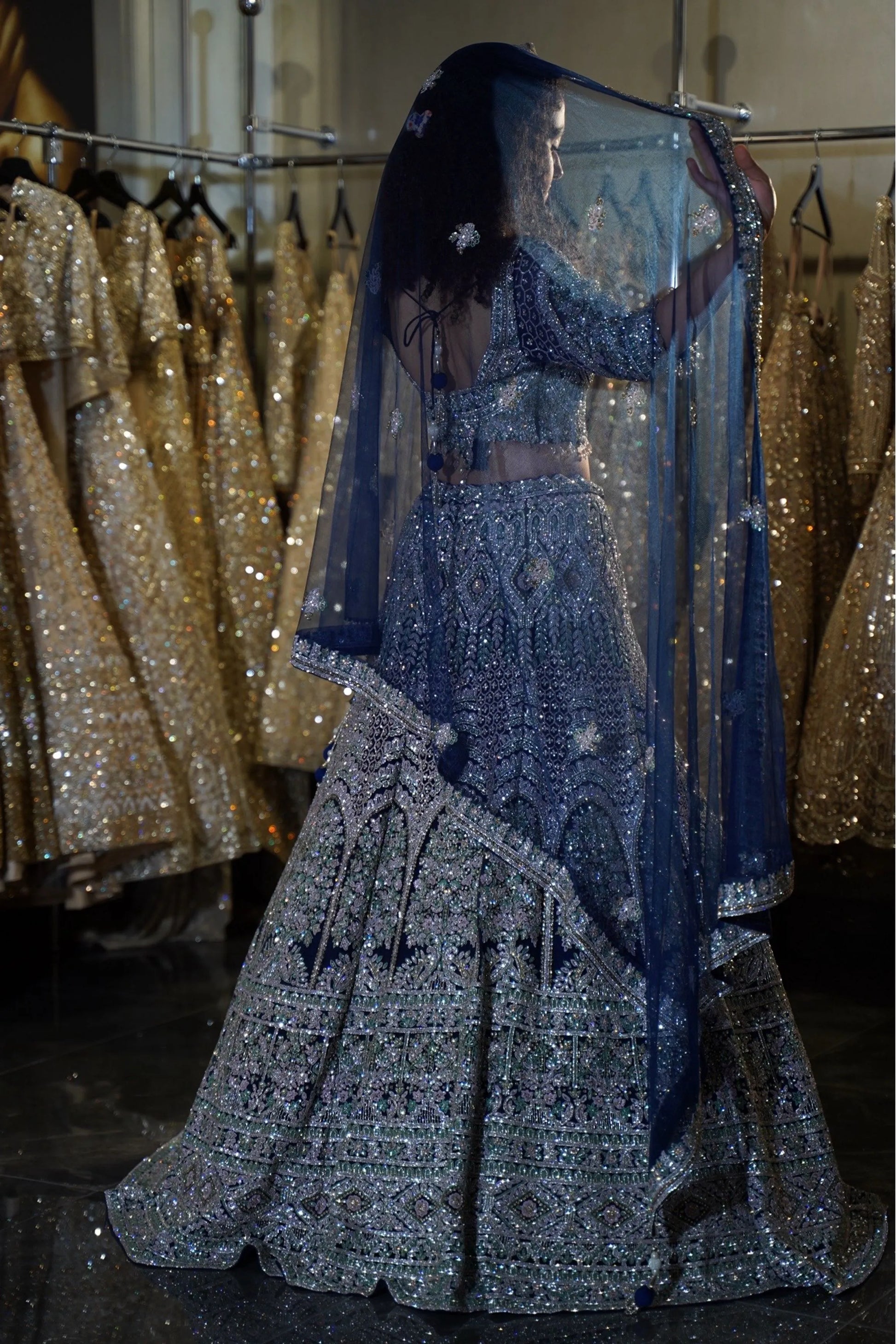 Midnight Blue Silver Sequin Embellished Bridal Lehenga Choli