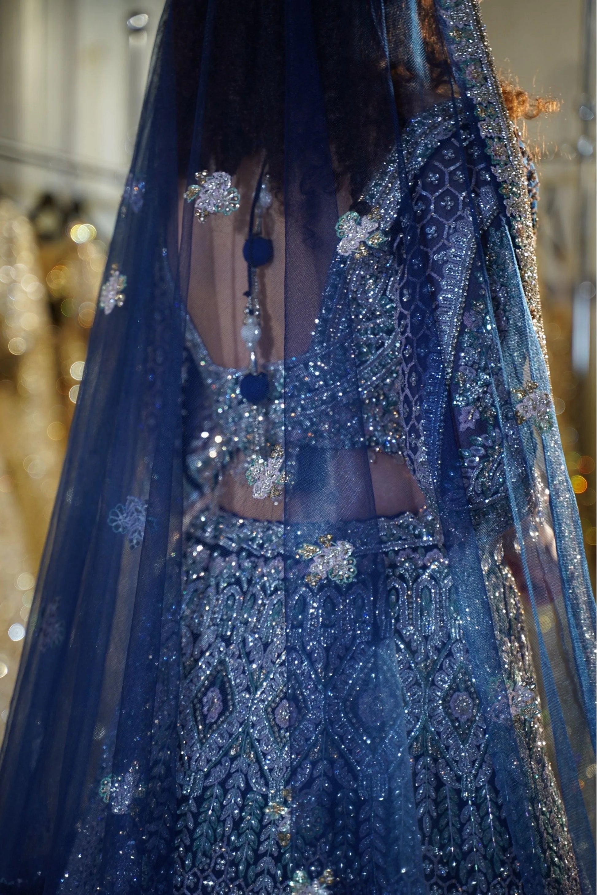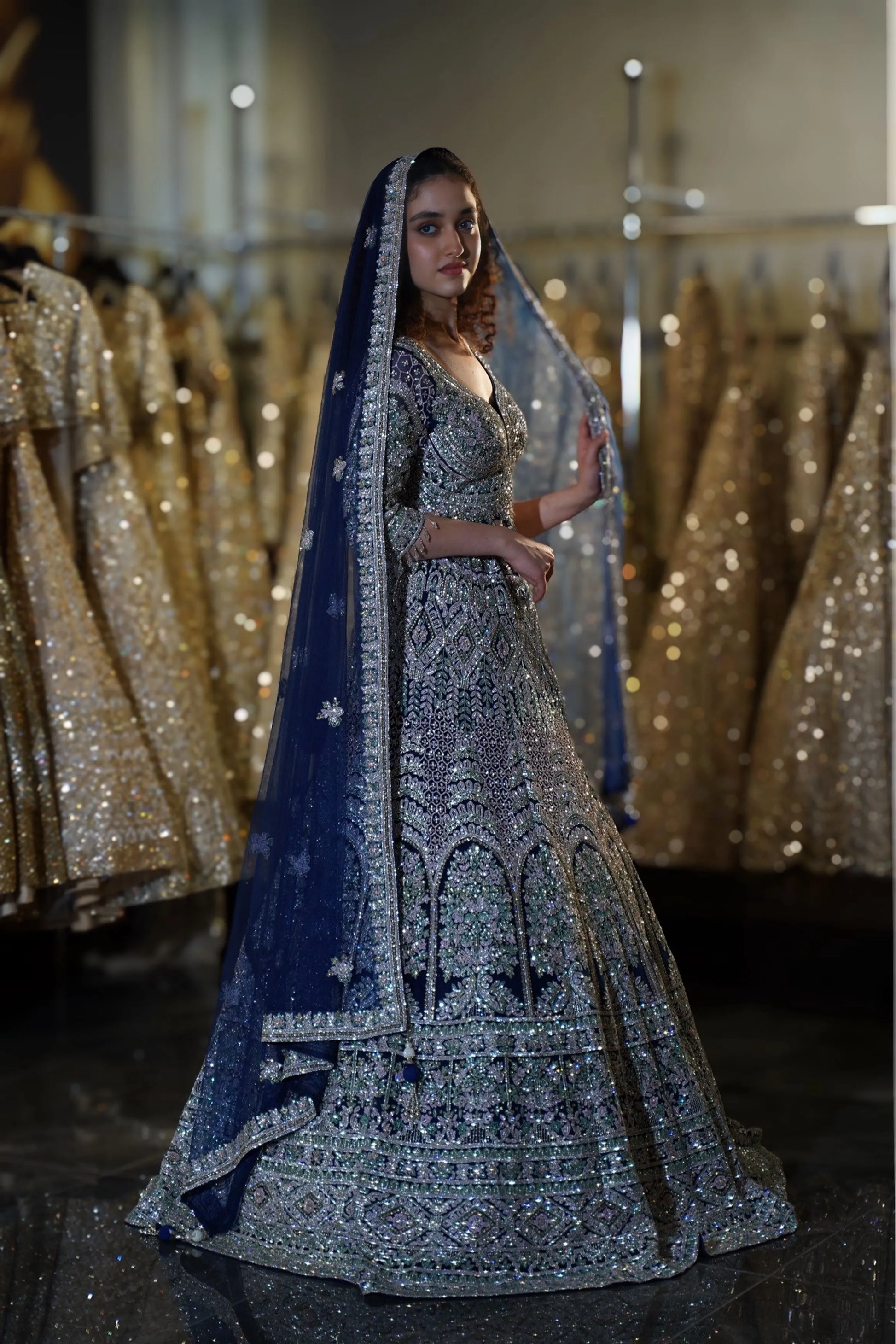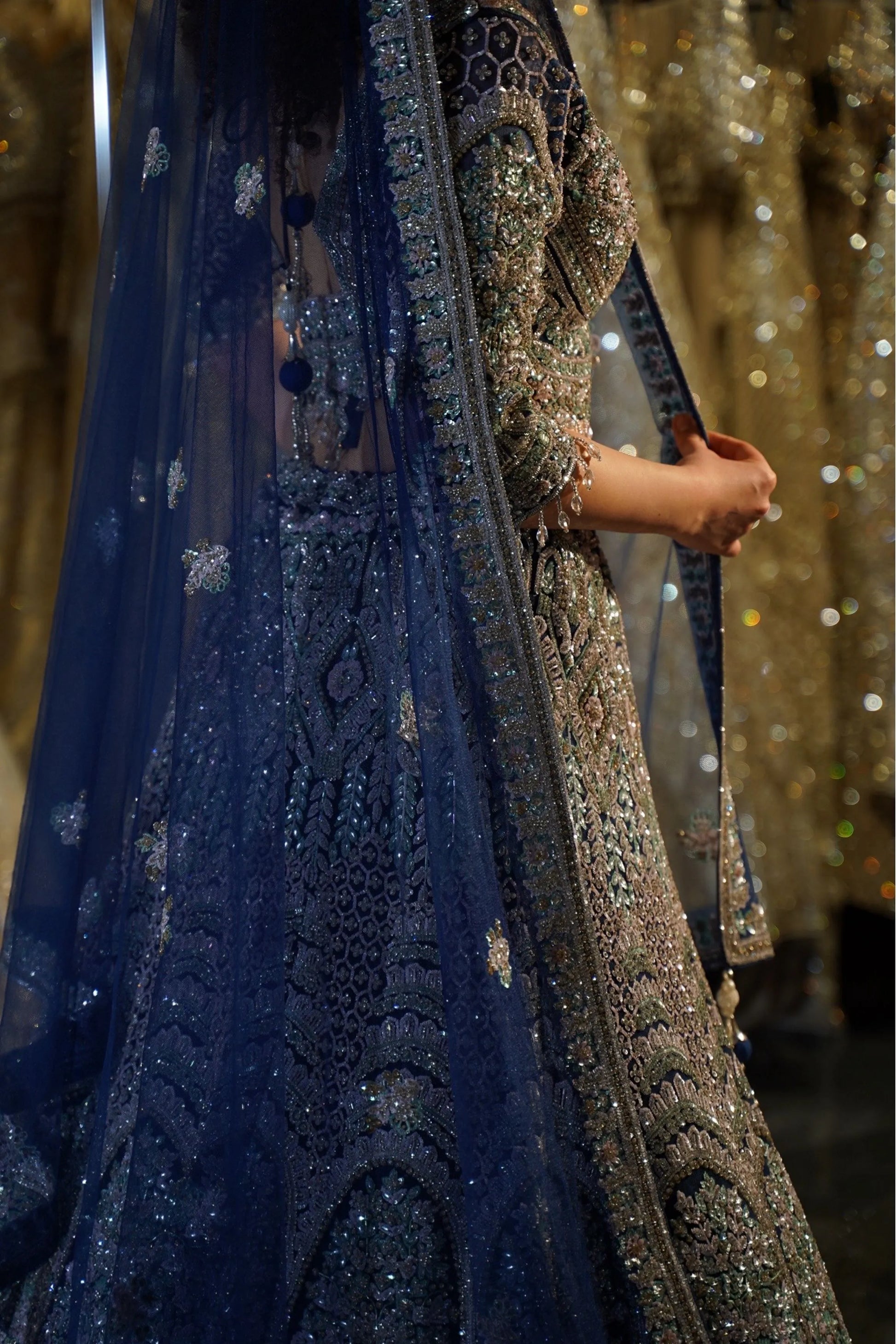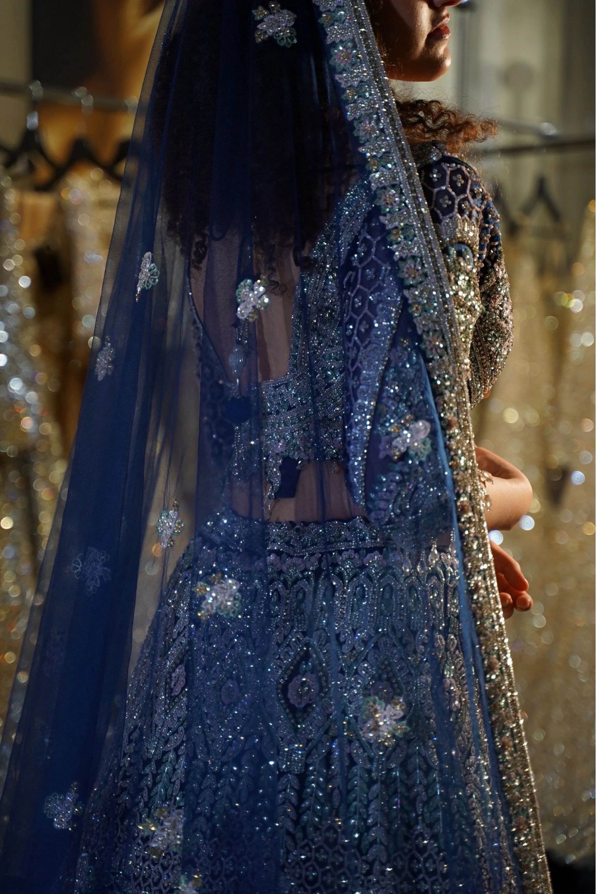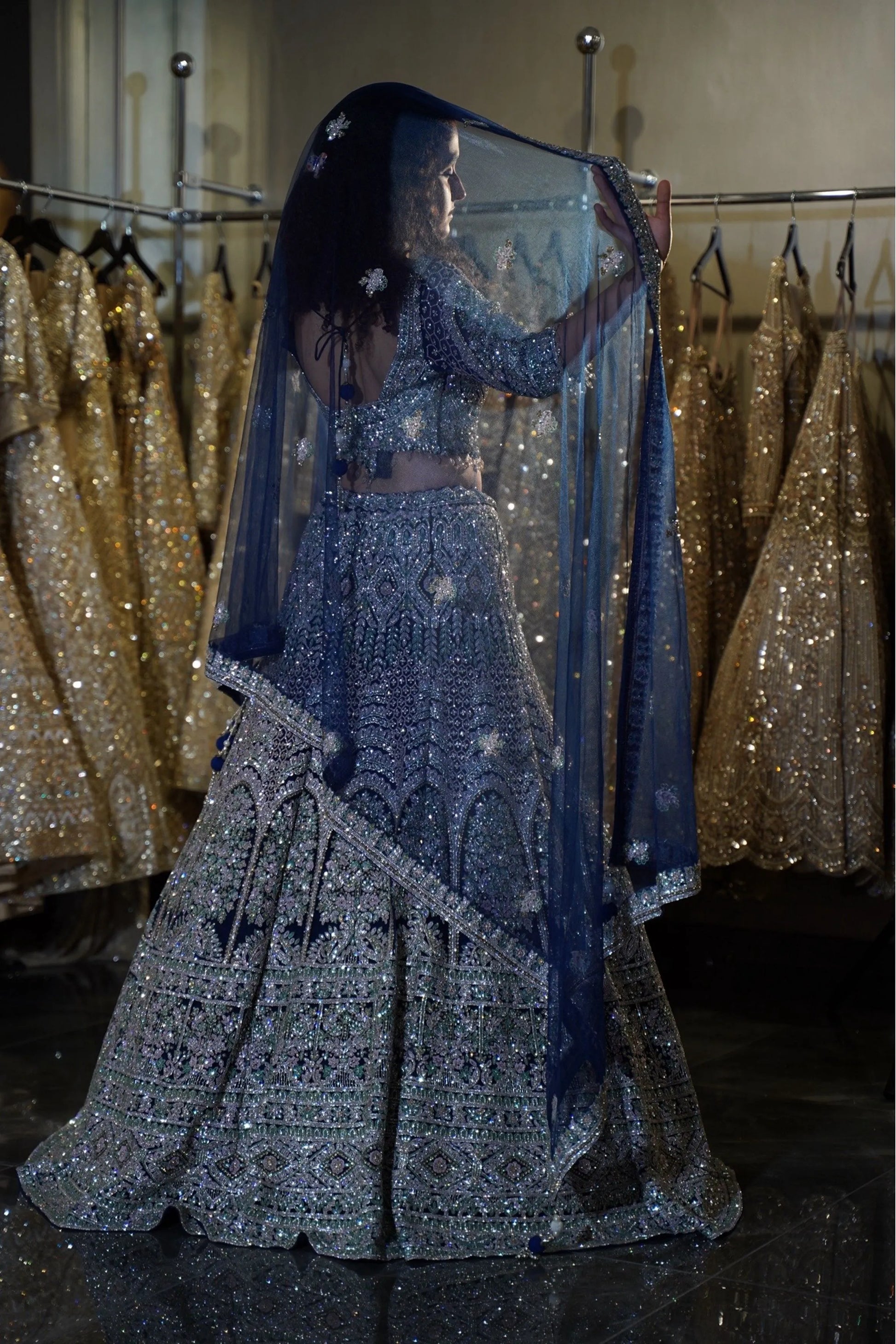 Midnight Blue Silver Sequin Embellished Bridal Lehenga Choli