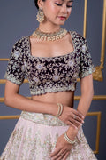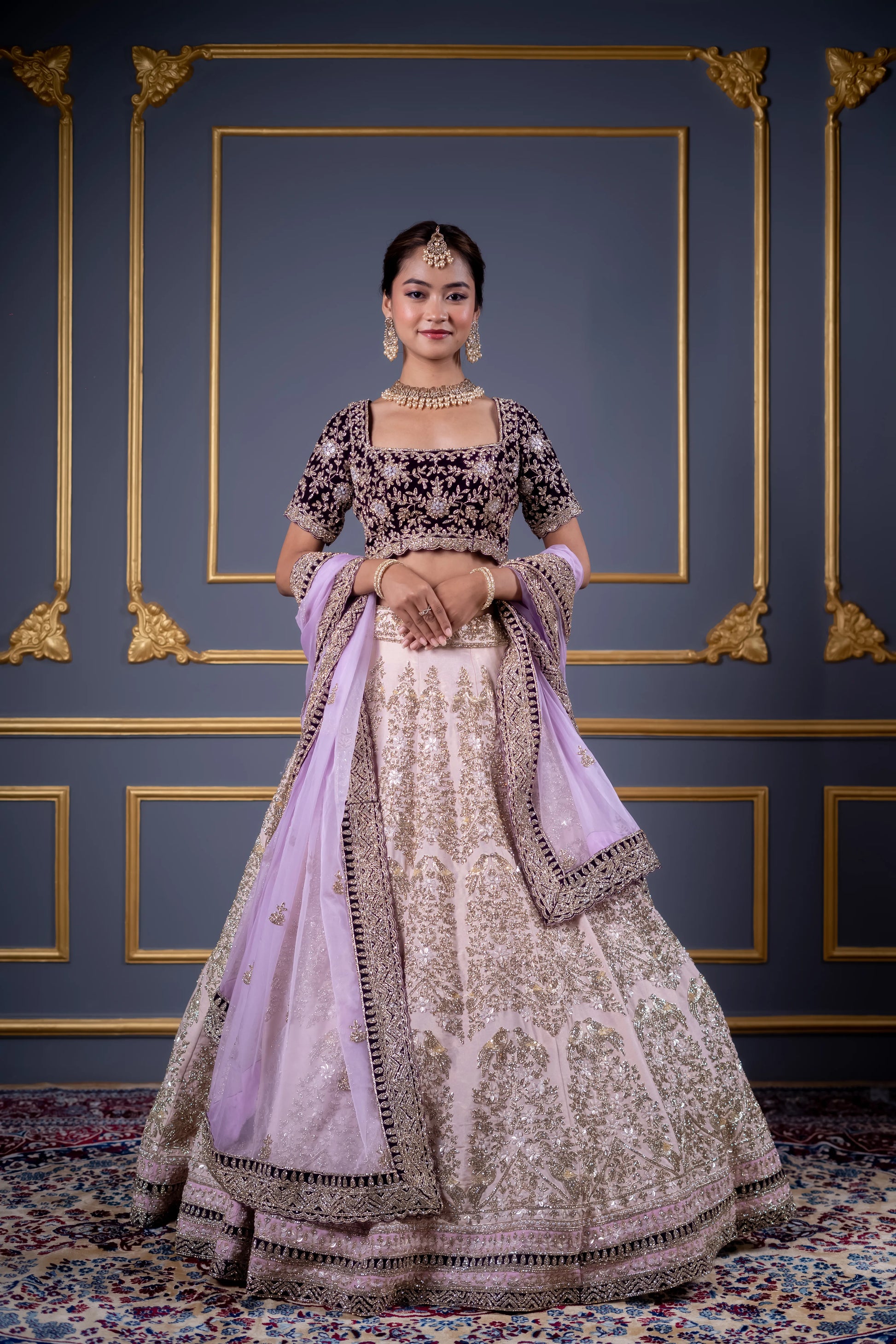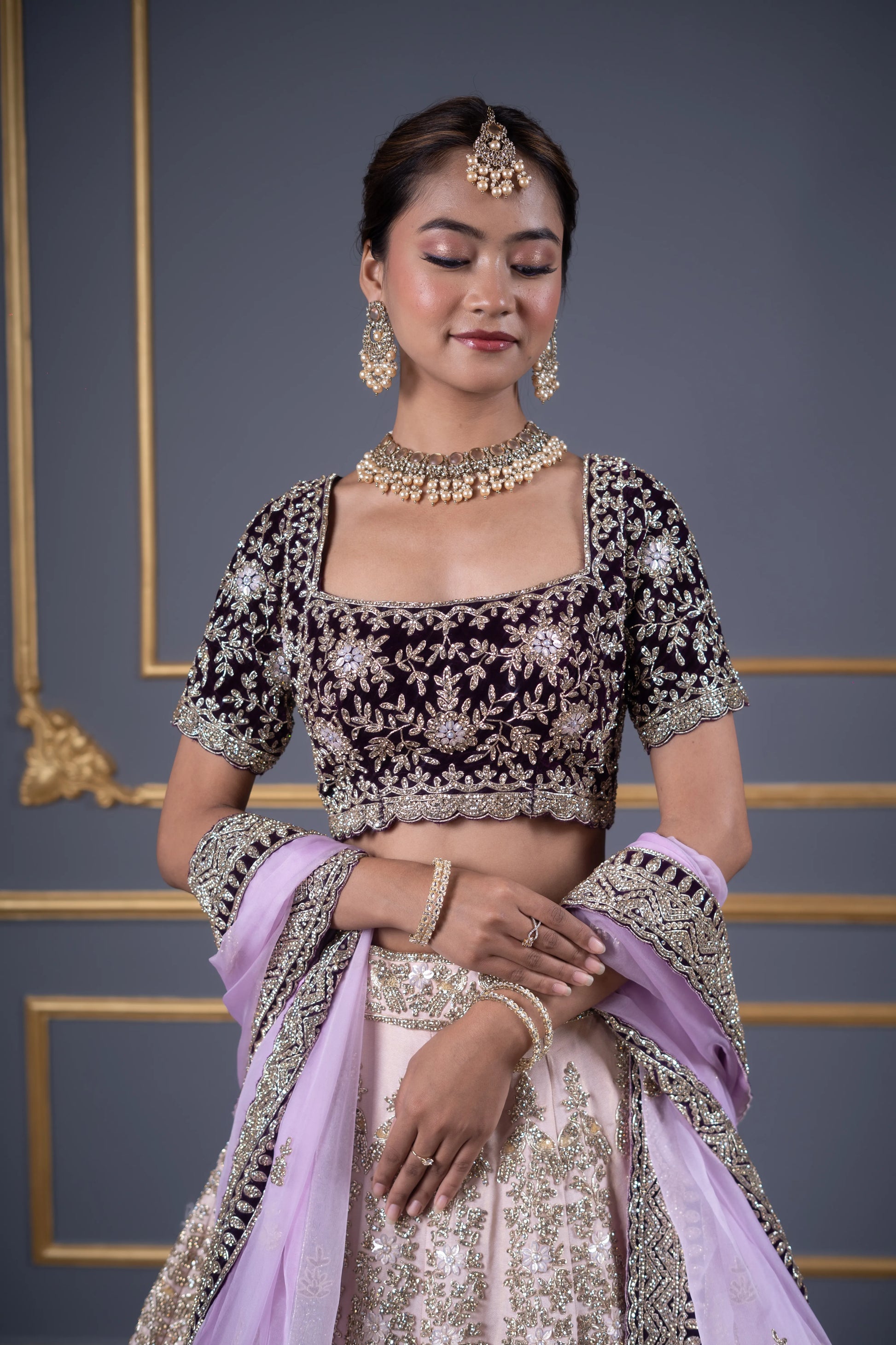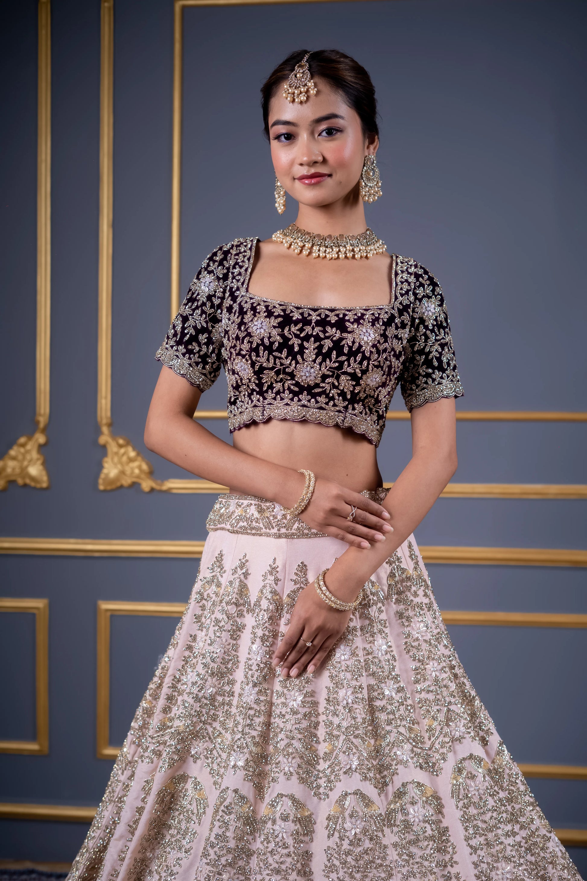 Midnight Black & Blush Pink Velvet Contrast Bridal Lehenga