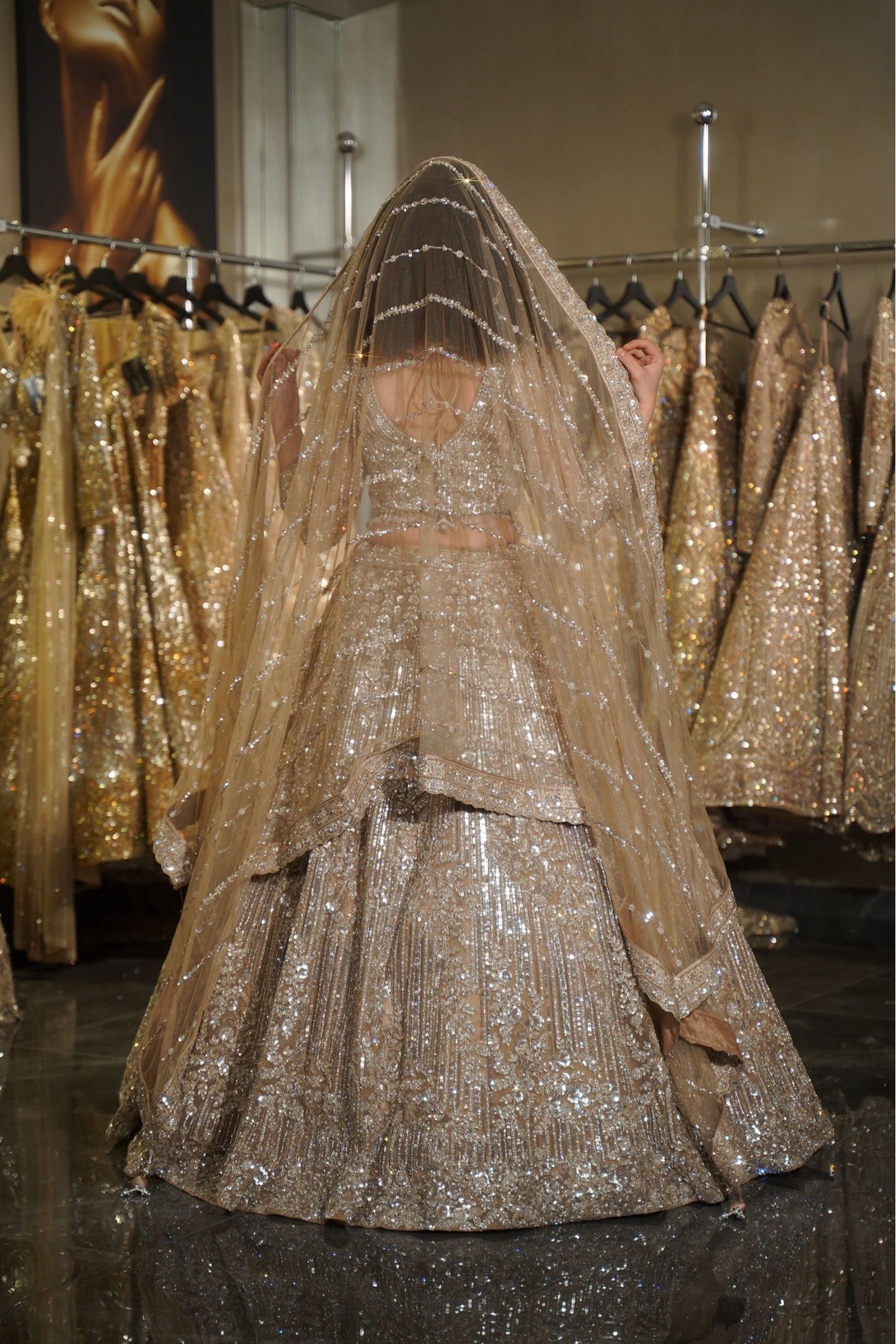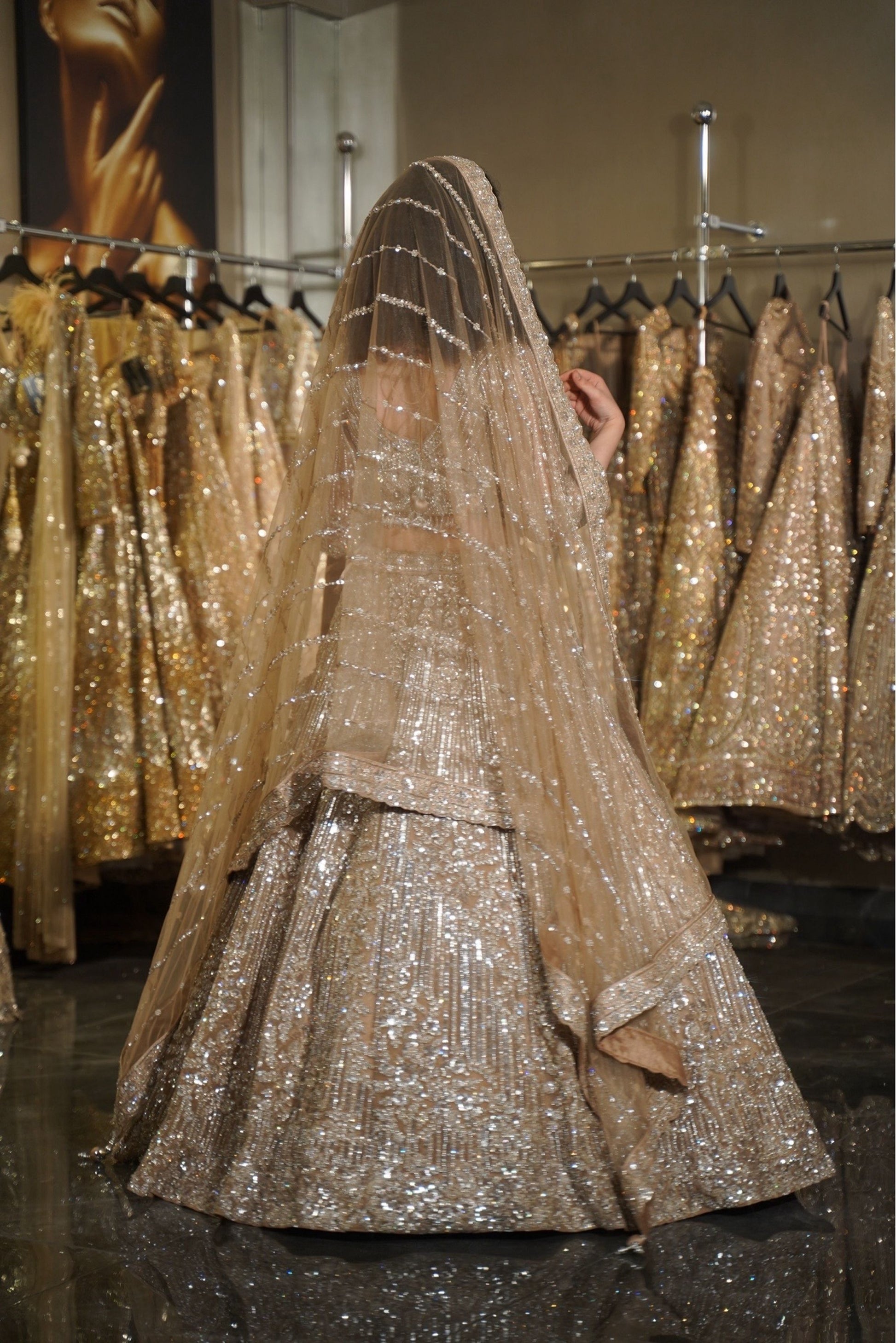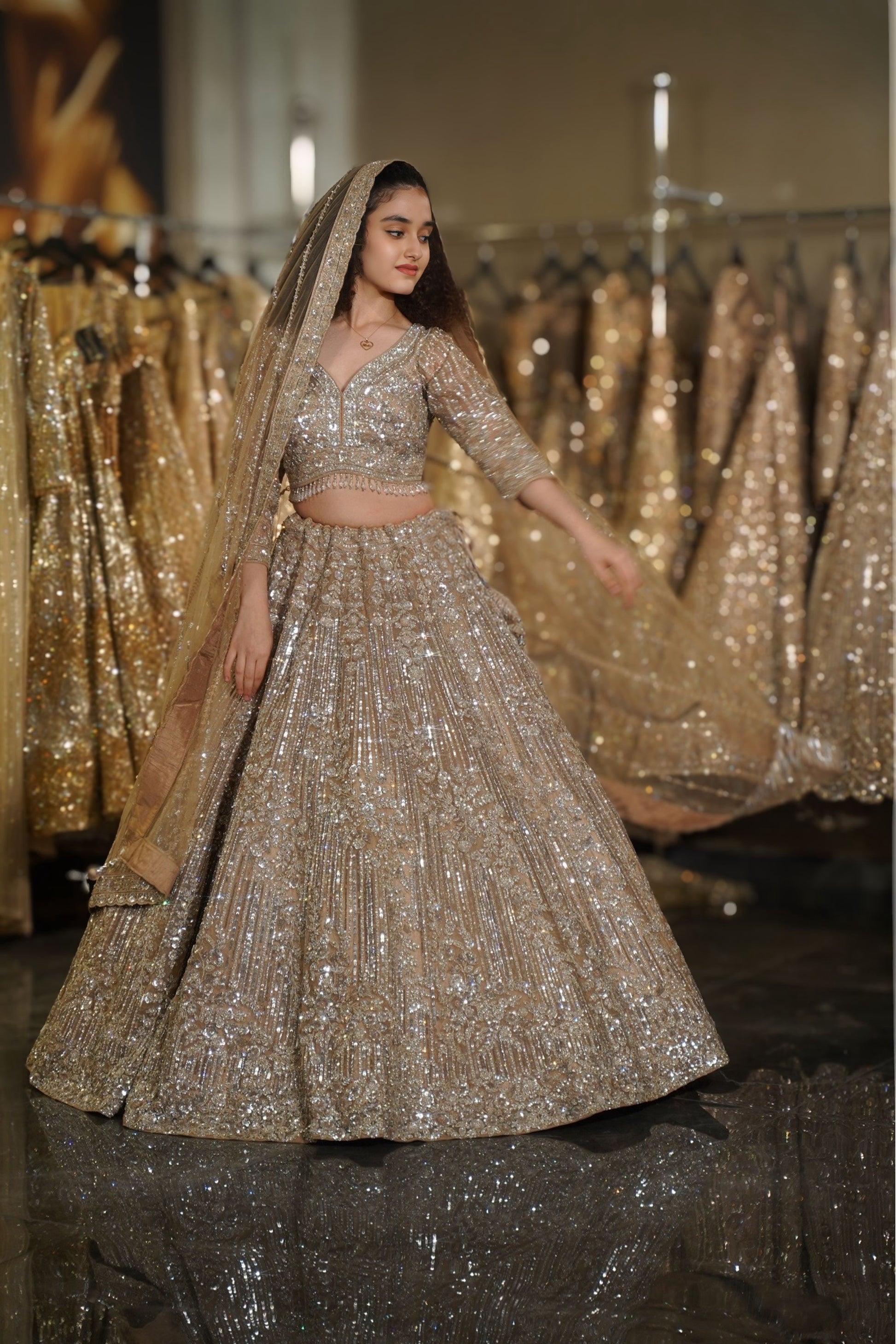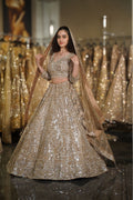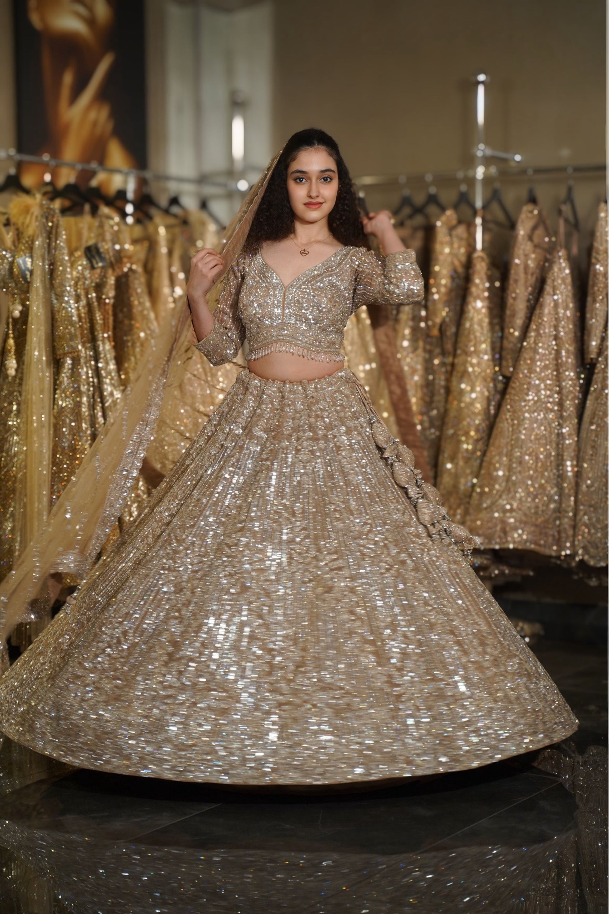Champagne Gold Linear & Floral Sequin Embroidered Lehenga Set