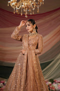 Antique Finish: The muted gold zardosi and sequin work against the dusty rose base creates a rich, antique copper effect 💎