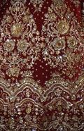 | Dupatta | Sheer crimson net dupatta with a heavy scalloped embroidered border and scattered sequins |