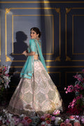 Celebrate the joy of color with this spectacular Contrast Bridal Lehenga. A playful yet sophisticated masterpiece, this ensemble pairs a soft blush pink skirt with a vibrant turquoise blue blouse and dupatta. The entire outfit is illuminated by dazzling mirror work, creating a kaleidoscope of sparkles that is perfect for a lively Sangeet, Mehendi, or a sunny day wedding.