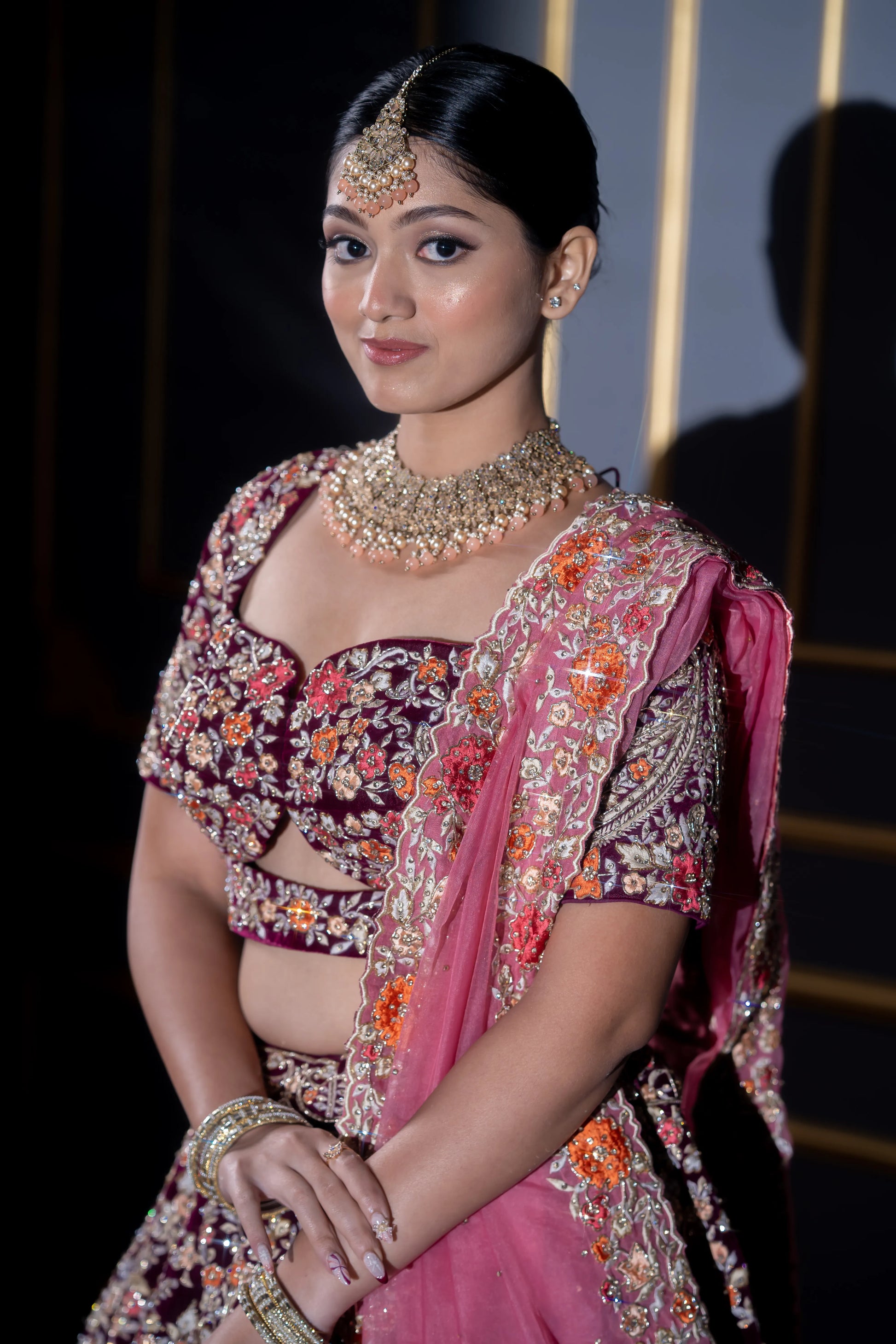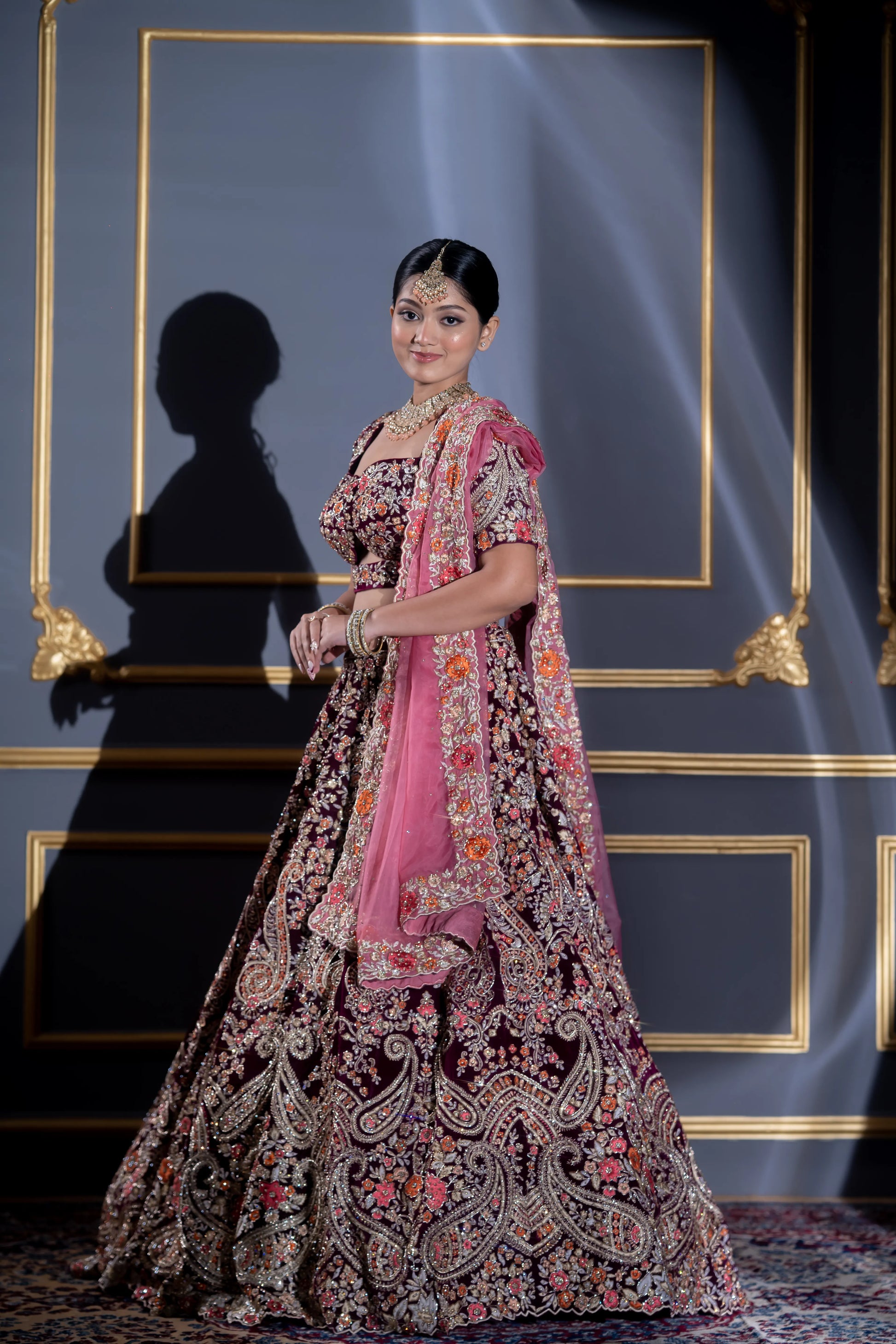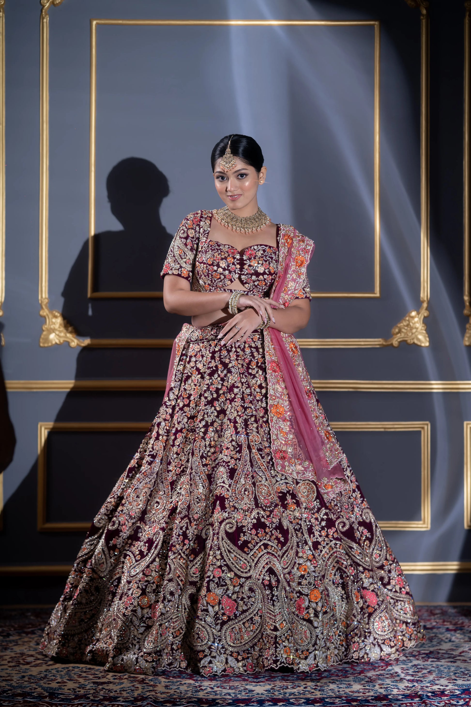 Regal Burgundy Floral Embroidered Bridal Lehenga