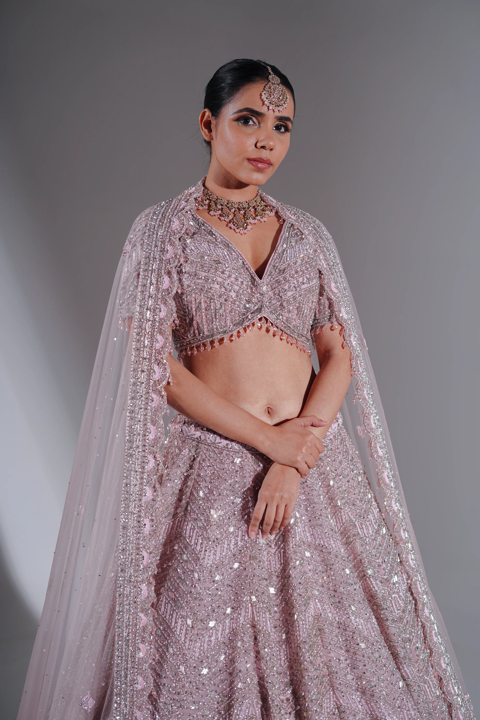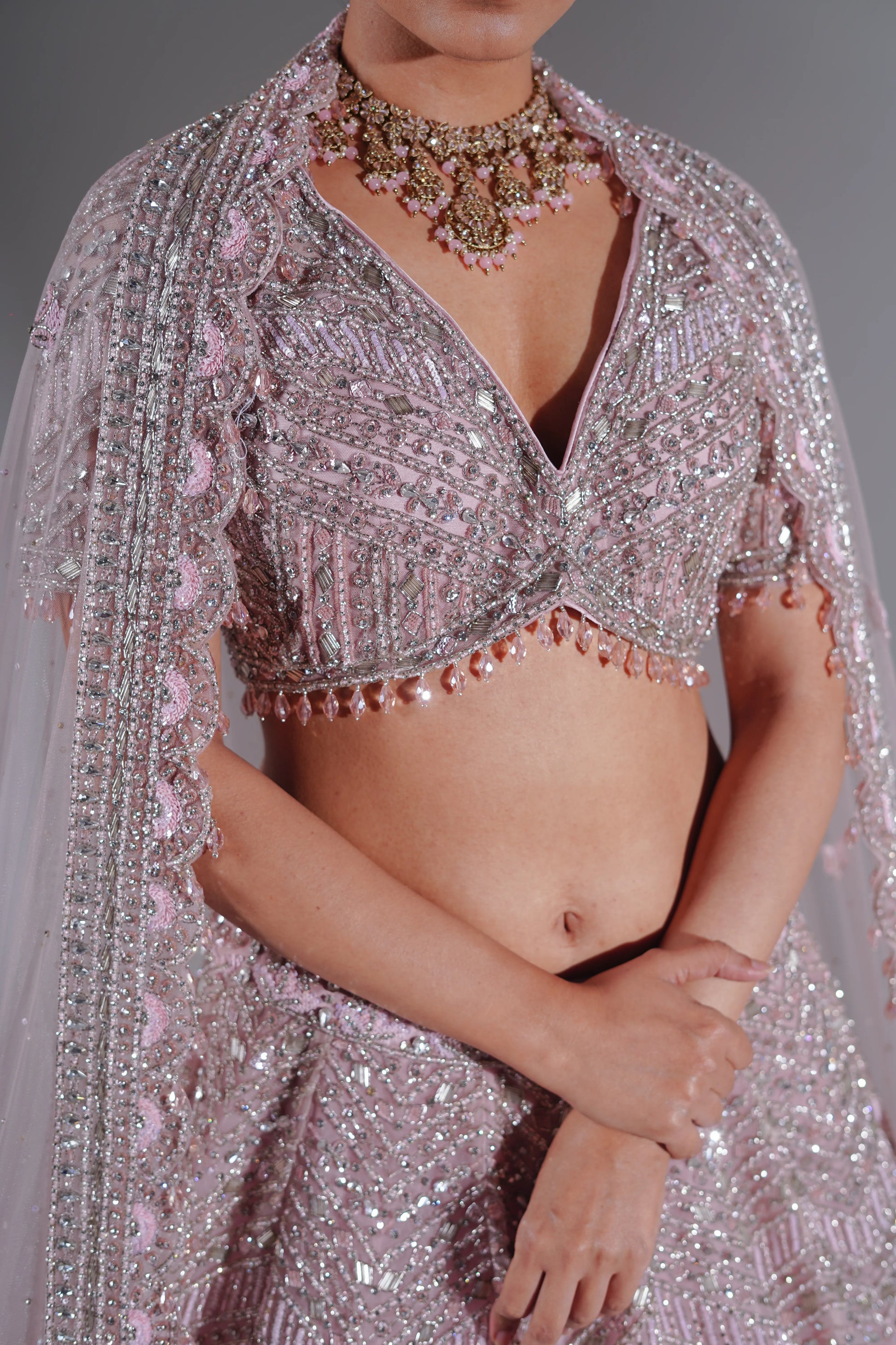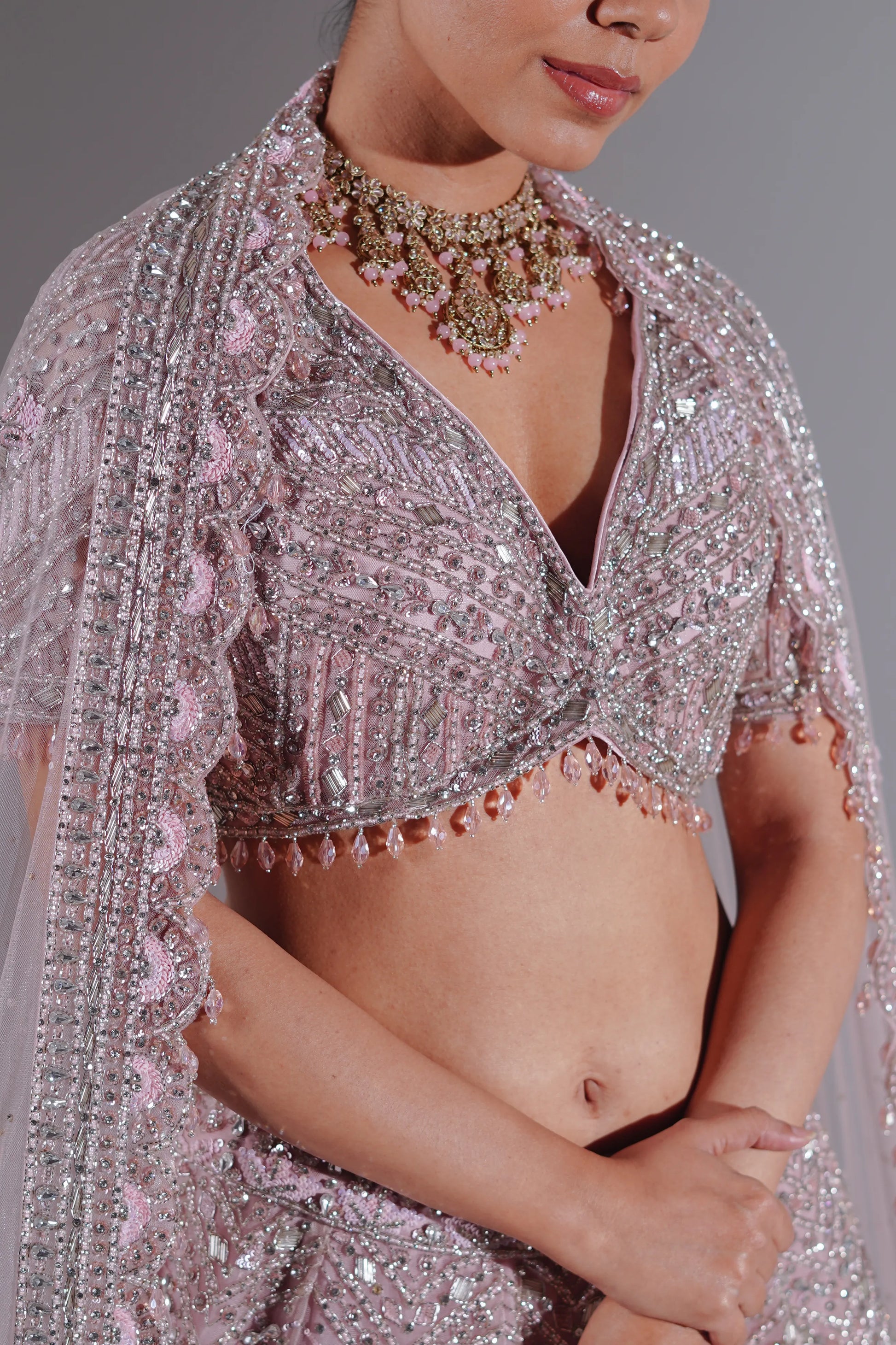 Rose Quartz Crystal Cascade Bridal Lehenga Choli