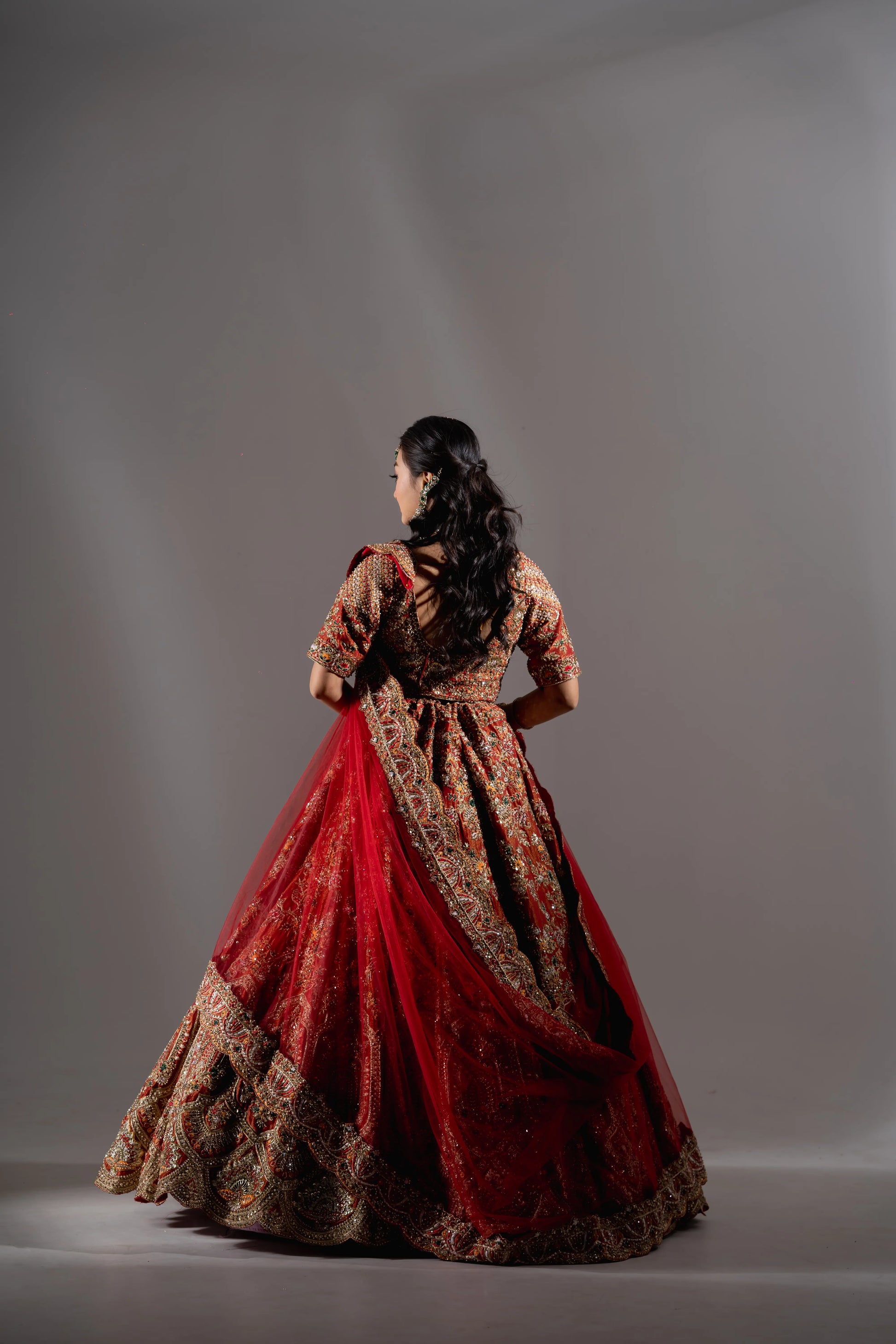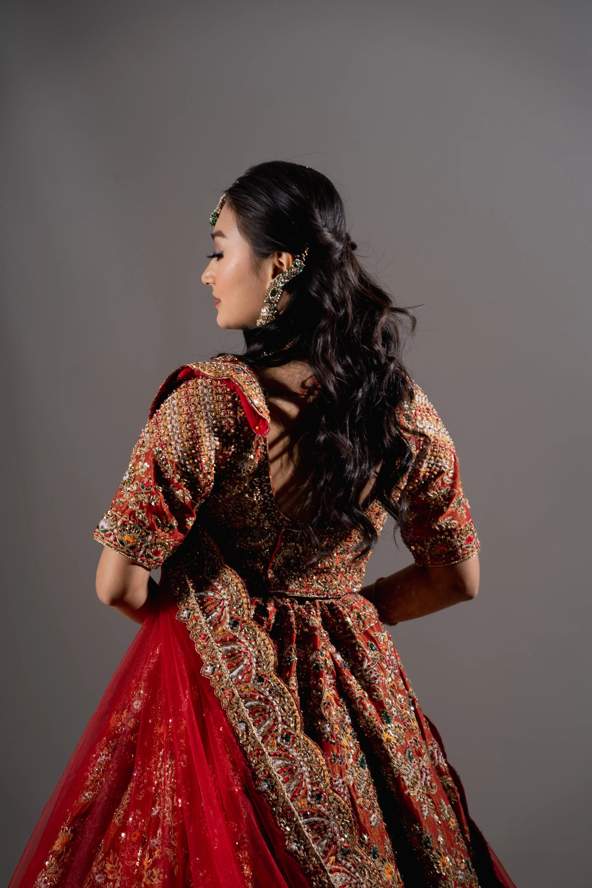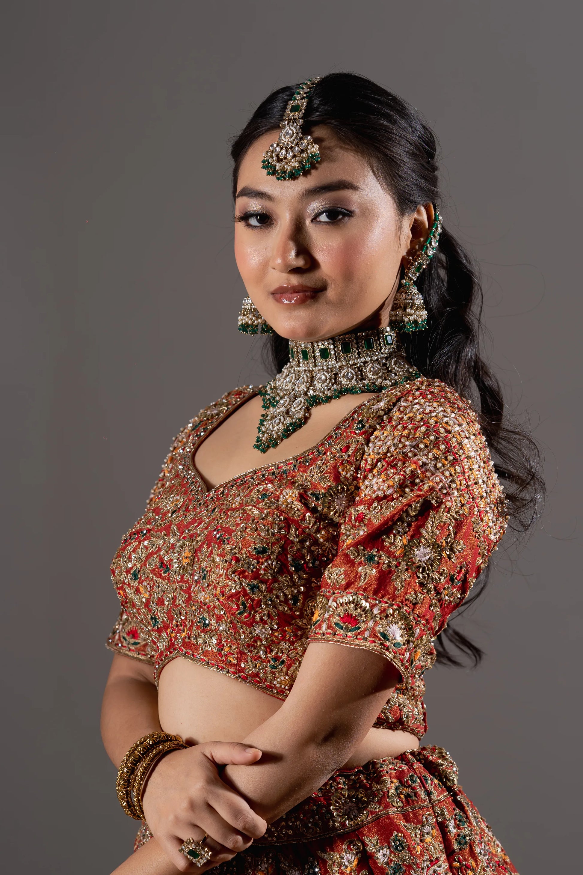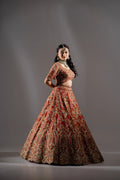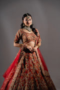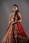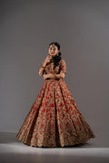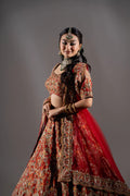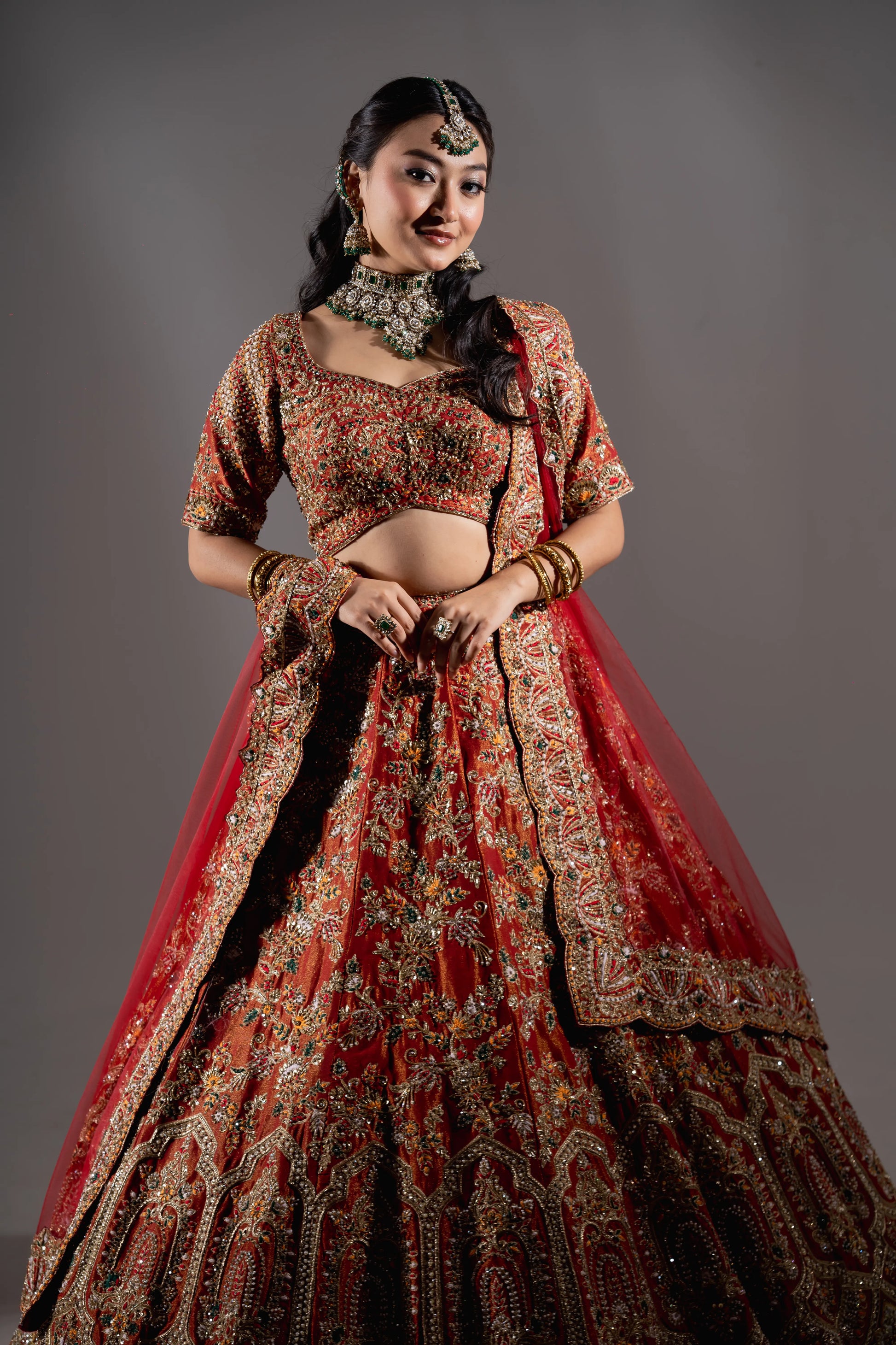 Rust Orange Zardosi Embroidered Bridal Lehenga