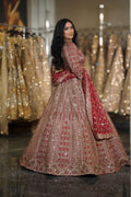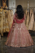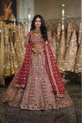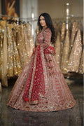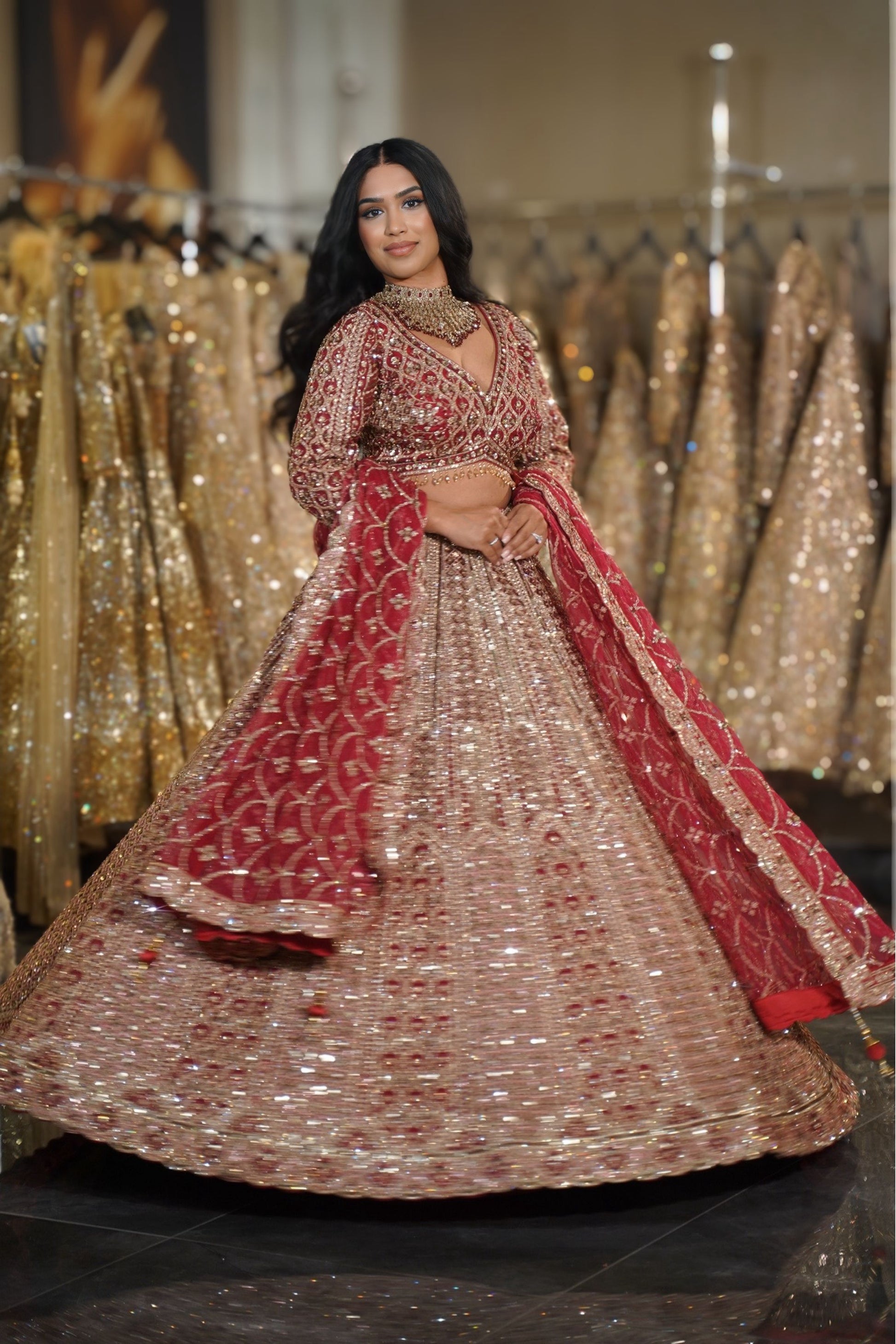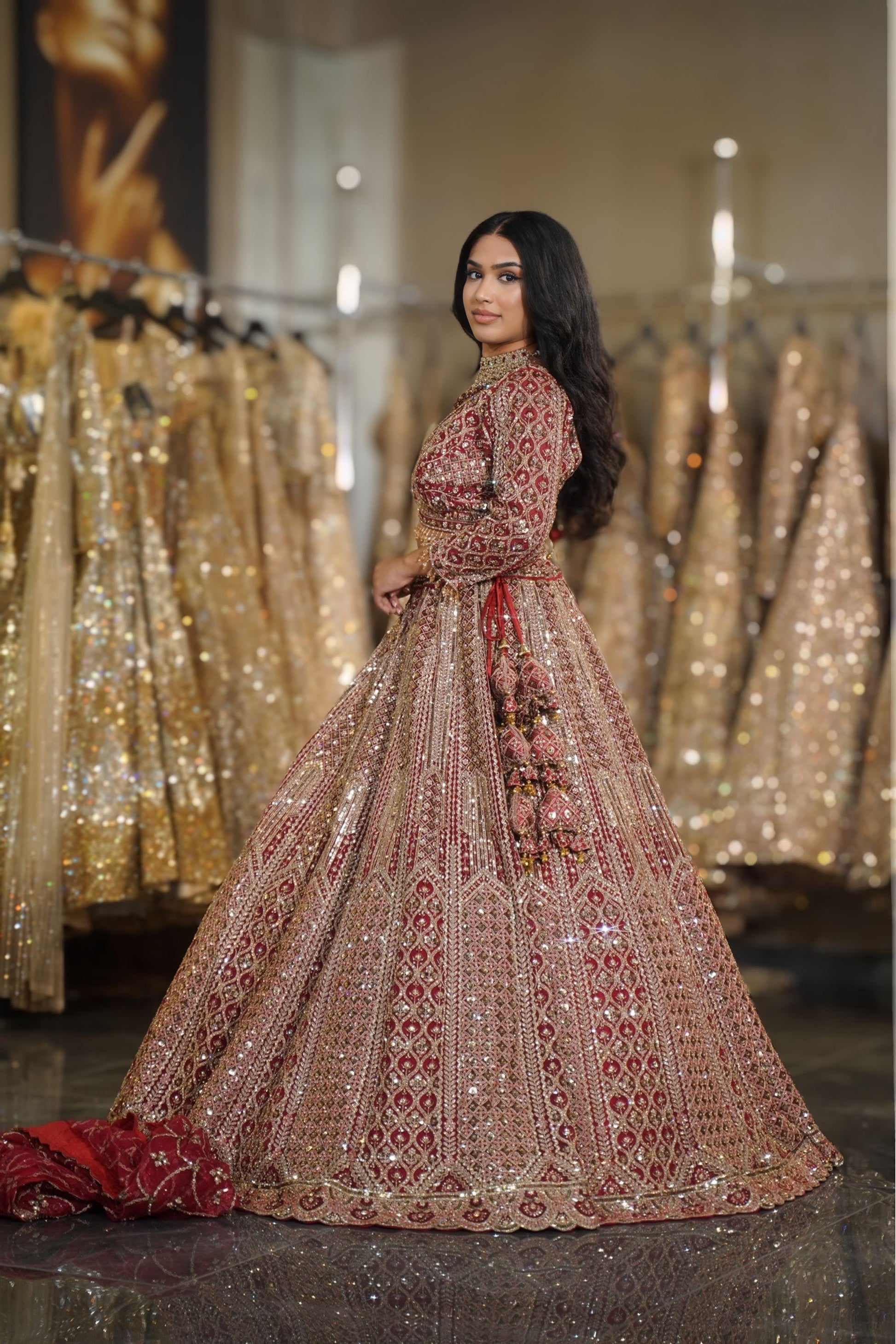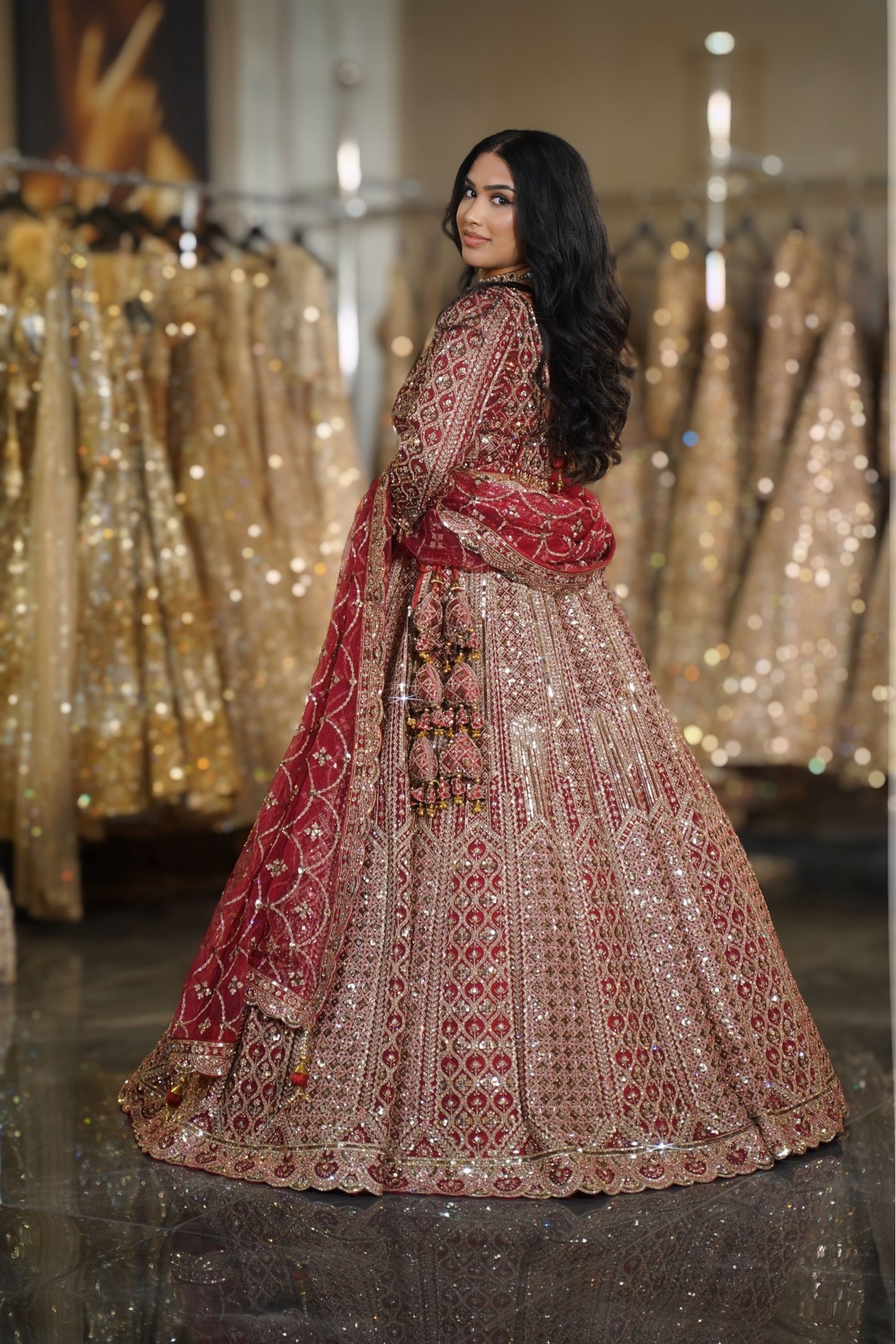 Deep Red Geometric Diamond & Crystal Embroidered Bridal Lehenga Set