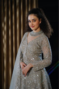 | Dupatta | Sheer silver grey net dupatta with a matching embroidered border and scattered sequins |