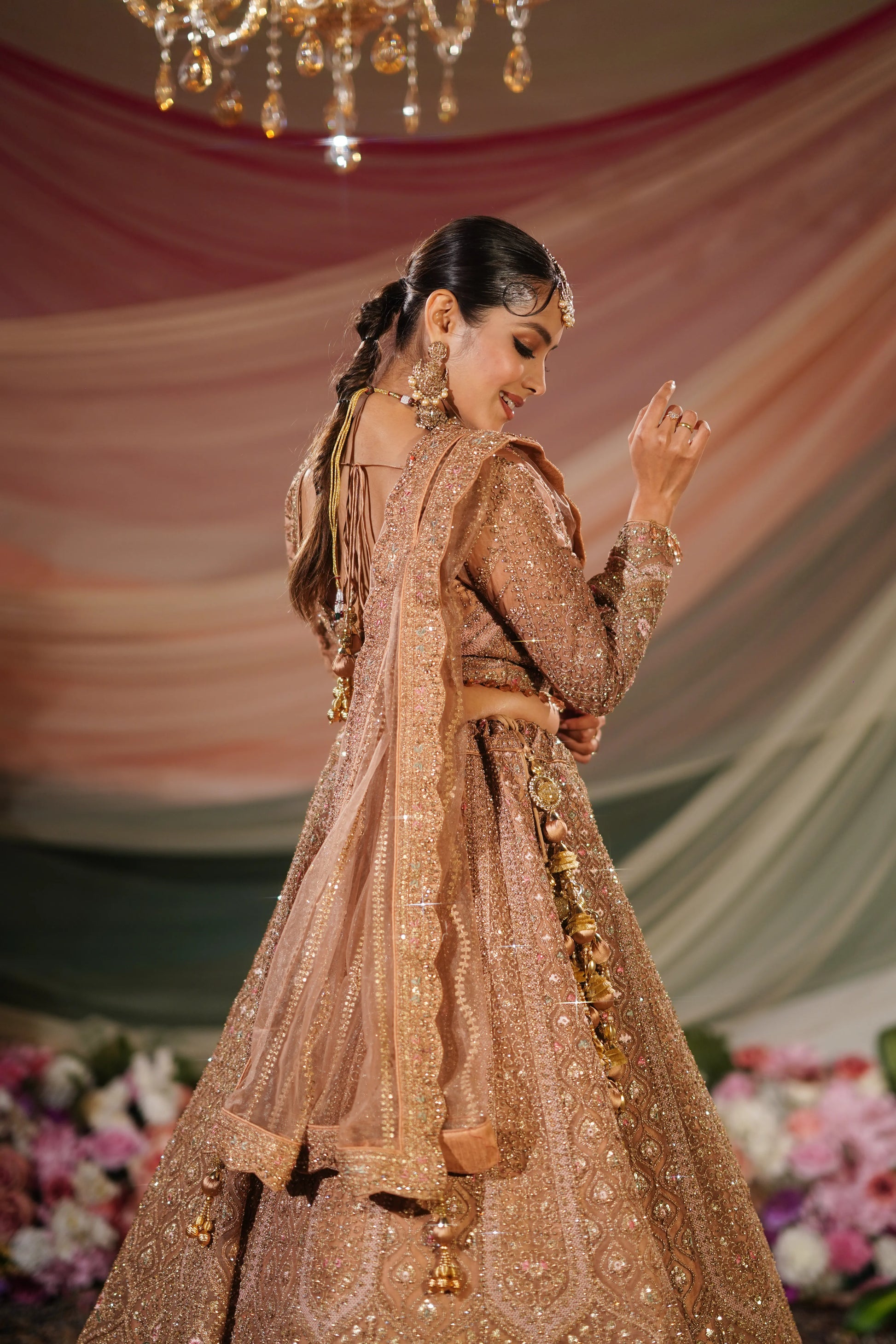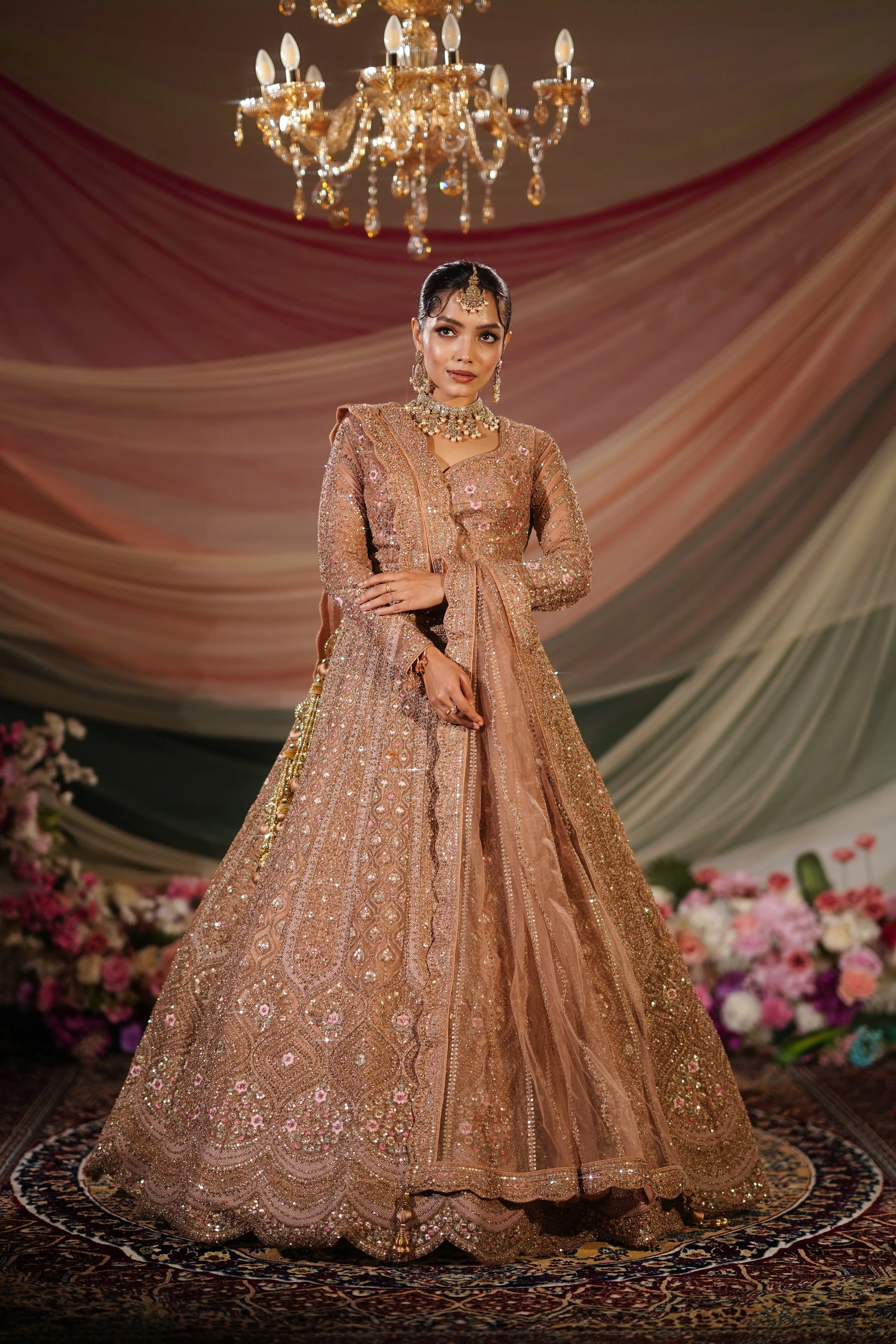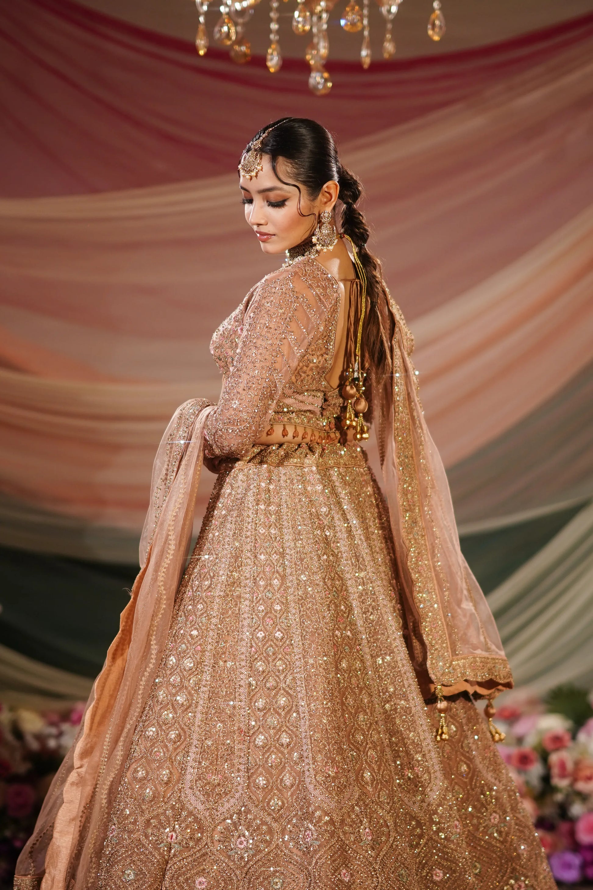 Step into celebration with the Peach Sunset Lehenga Choli. This exquisite ensemble blends premium fabrics with meticulous handwork to create a stage-ready bridal look. Designed for sangeet, mehendi, cocktail parties and receptions, it balances heavy embellishment with wearable comfort.